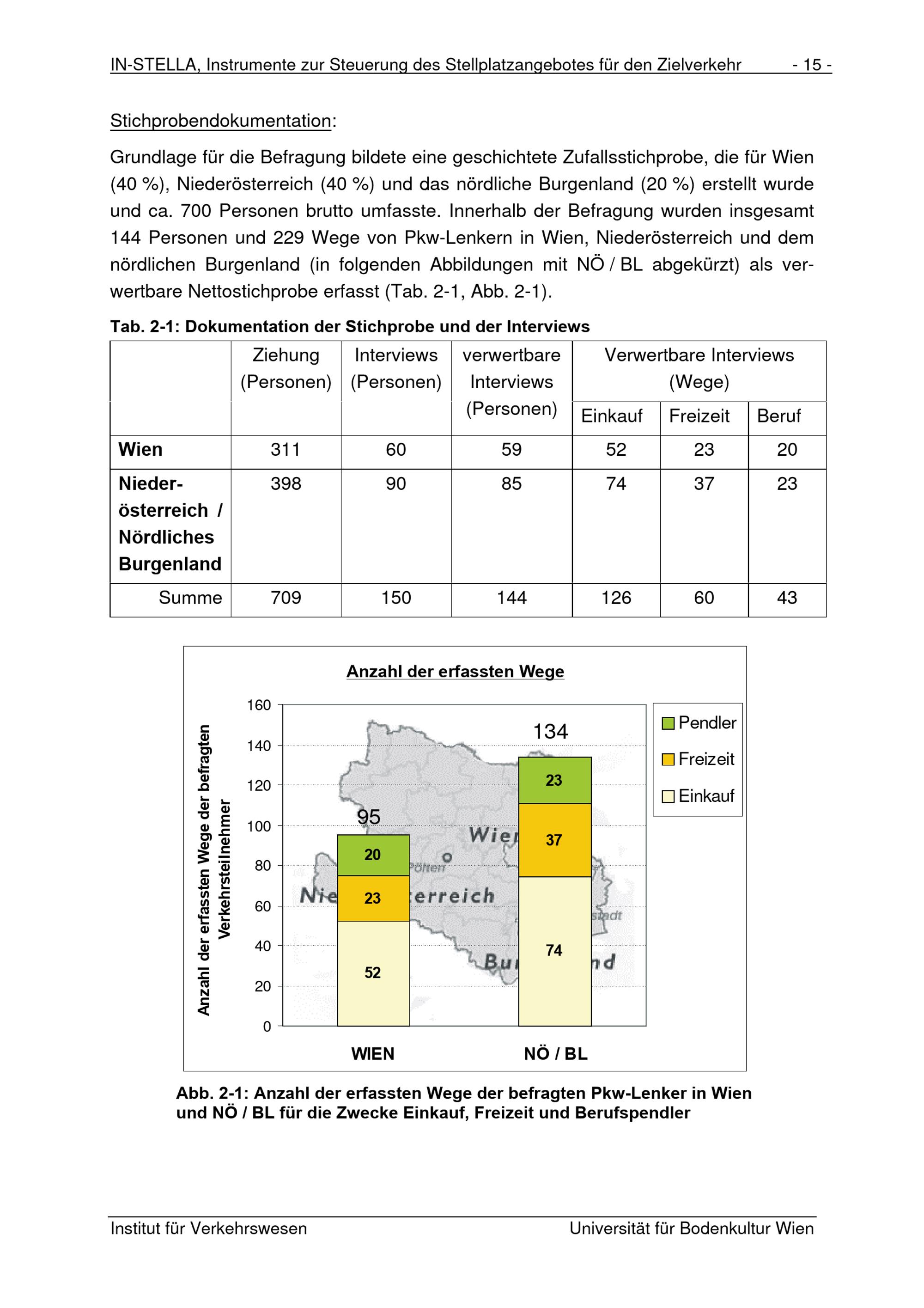 IN-STELLA, Instrumente zur Steuerung des Stellplatzangebotes für den Zielverkehr / Universität für Bodenkultur Wien. 2 / Befragung der Verkehrsteilnehmer und Betreiber sowie Maßnahmenempfehlungen