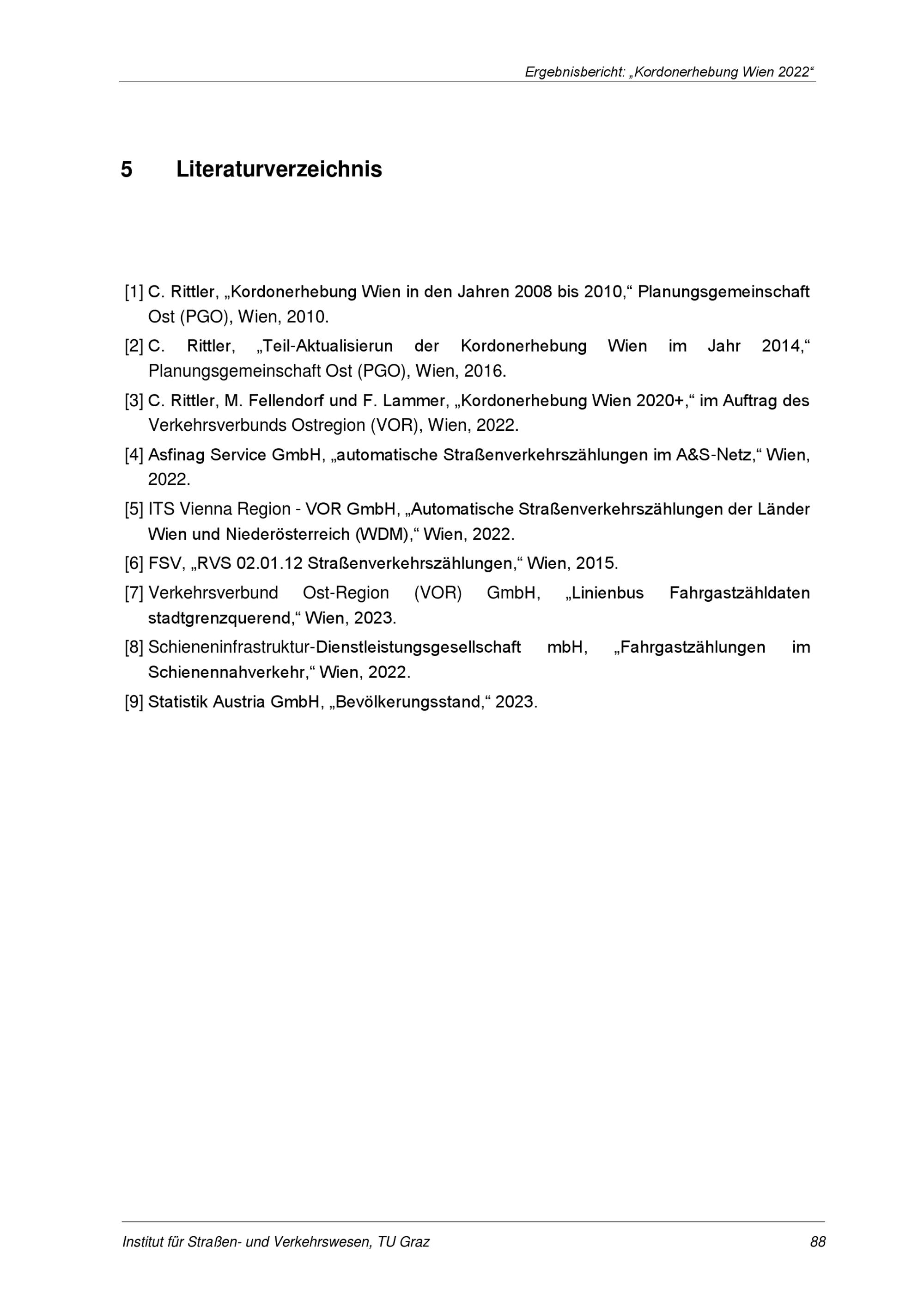 Kordonerhebung Wien 2022 : Ergebnisbericht / Auftraggeber: Magistrat der Stadt Wien MA 18 - Stadtentwicklung und Stadtplanung, Amt der NÖ Landesregierung RU7 Raumordnung und Gesamtverkehrsangelegenheit ; Auftragnehmer: Technische Universität Graz, Inst. f. Straßen- und Verkehrswesen, Ingenieurbüro für Verkehrswesen und Verkehrswirtschaft - DI Rittler Christian