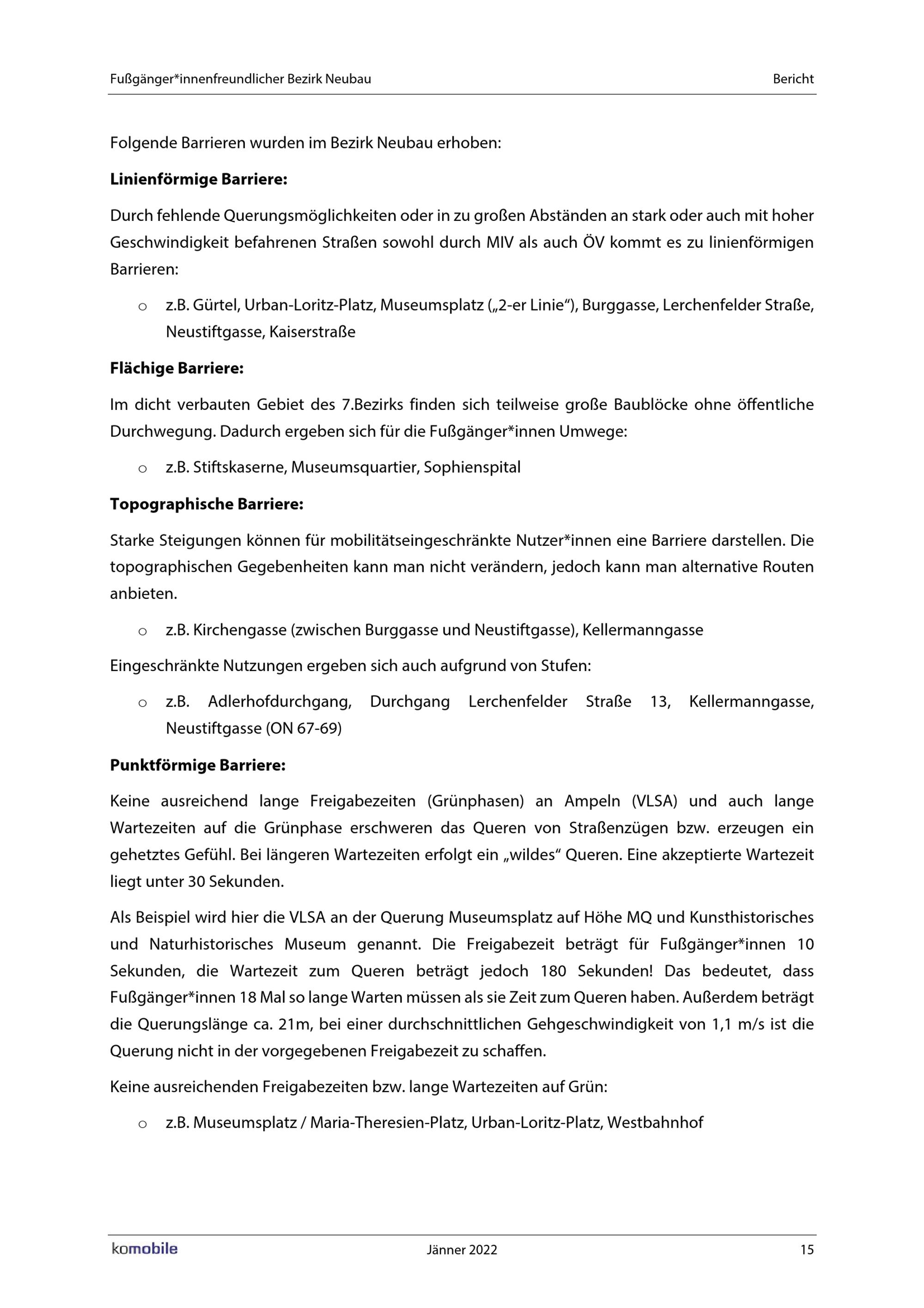 Masterplan Gehen Neubau : Fußverkehrskonzept für den 7. Wiener Gemeindebezirk / erstellt im Auftrag der: Bezirk Neubau Bezirksvorsteher Markus Reiter Bezirksvorstehung Neubau ; komobile GmbH Büro für Verkehrsplanung ; Bearbeitung: Olivia Kantner, Magdalena Gössinger, Margarethe Staudner, Thomas Hirsch