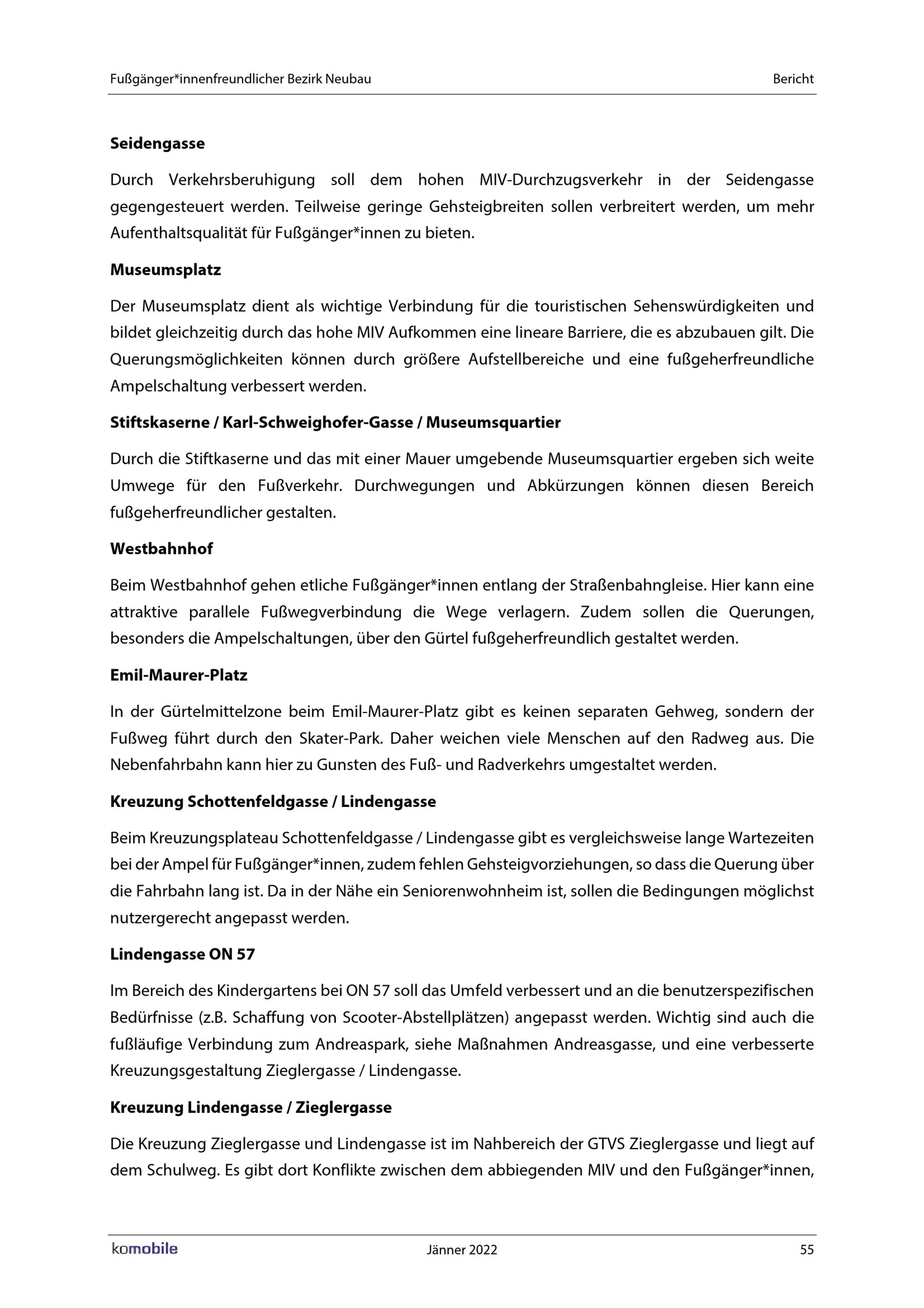 Masterplan Gehen Neubau : Fußverkehrskonzept für den 7. Wiener Gemeindebezirk / erstellt im Auftrag der: Bezirk Neubau Bezirksvorsteher Markus Reiter Bezirksvorstehung Neubau ; komobile GmbH Büro für Verkehrsplanung ; Bearbeitung: Olivia Kantner, Magdalena Gössinger, Margarethe Staudner, Thomas Hirsch