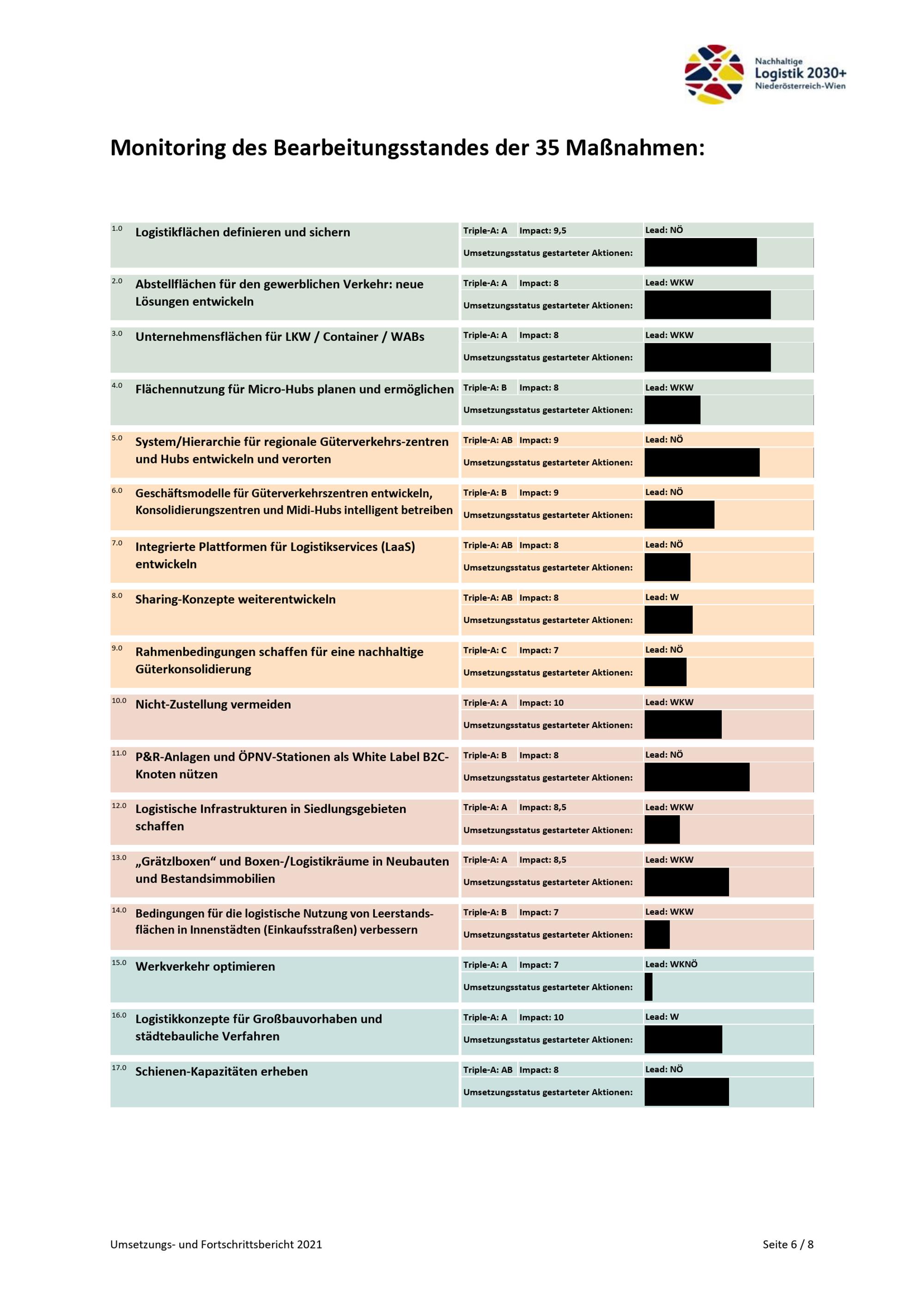 Nachhaltige Logistik 2030+ Niederösterreich-Wien : Umsetzungs- und Fortschrittsbericht 2021 / Projektträger: Amt der Niederösterreichischen Landesregierung, Stadt Wien - Stadtentwicklung und Stadtplanung [und 2 weitere] ; mit der Durchführung beauftragt: Denkstatt ; Econsult