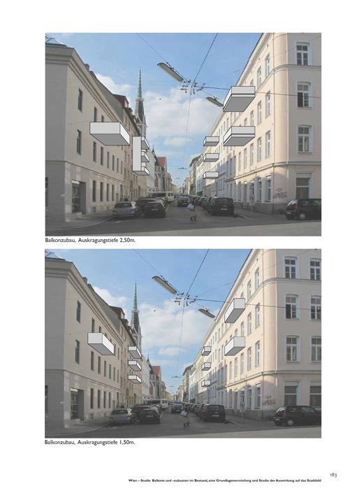 Wien-Studie Balkone und -zubauten im Bestand, eine Grundlagenermittlung und Studie der Auswirkung auf das Stadtbild / Auftraggeber: Magistratsabteilung 19 Architektur und Stadtgestaltung, Robert Kniefacz, Judith Maukner, Ruth Kertész ; Auftragnehmer: Univ. Lektor Architekt Cristian Abrihan in Kooperation mit Isabel Glogar, Ofhaus Office for Housing and Urban Studies