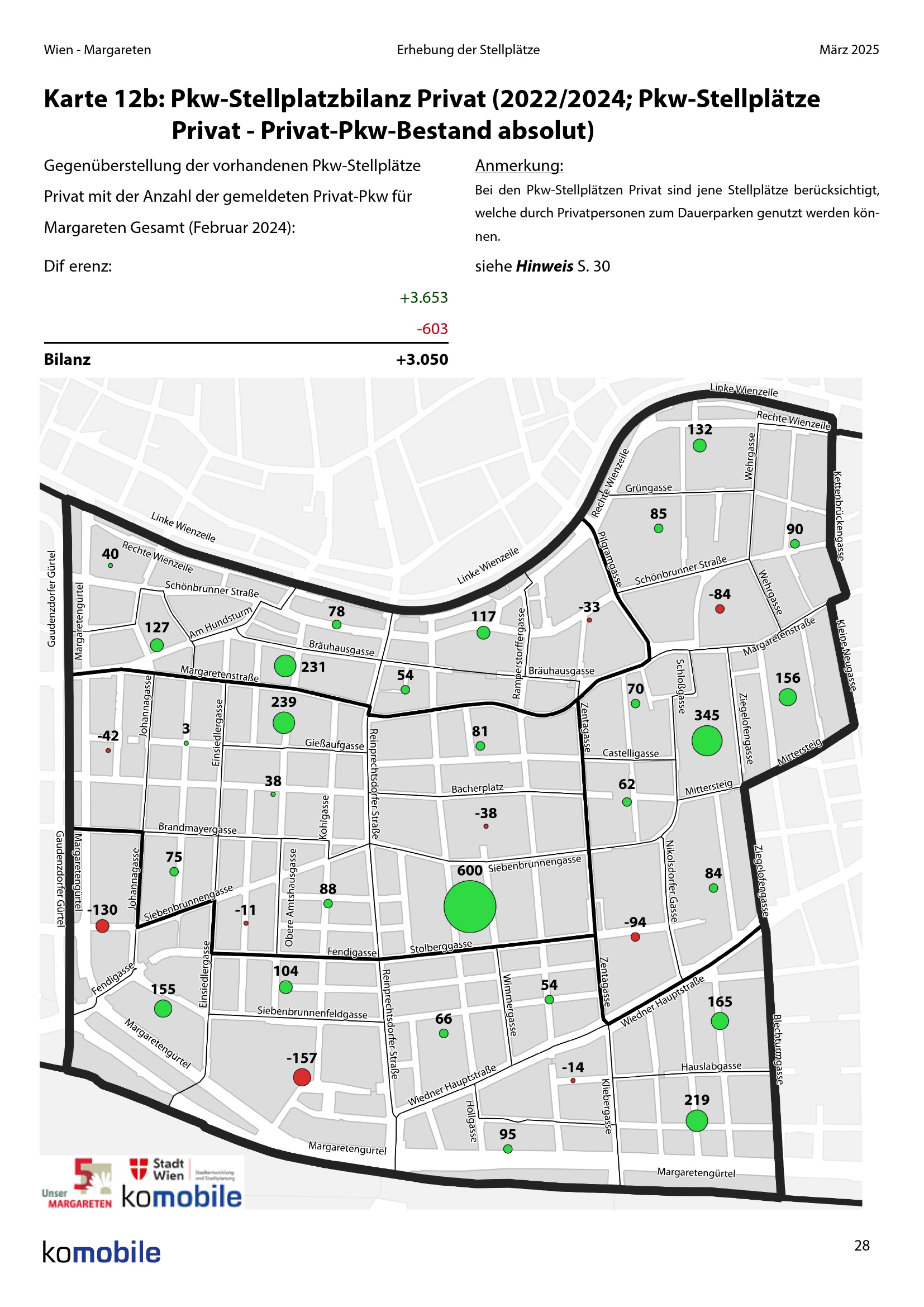 Erhebung der Stellplätze in Wien Margareten : Endbericht / erstellt im Auftrag der Bezirksvorstehung Wien Margareten und der MA 18 ; Bearbeitung: Romain Molitor, Thomas Hirsch, komobile GmbH Büro für Verkehrsplanung