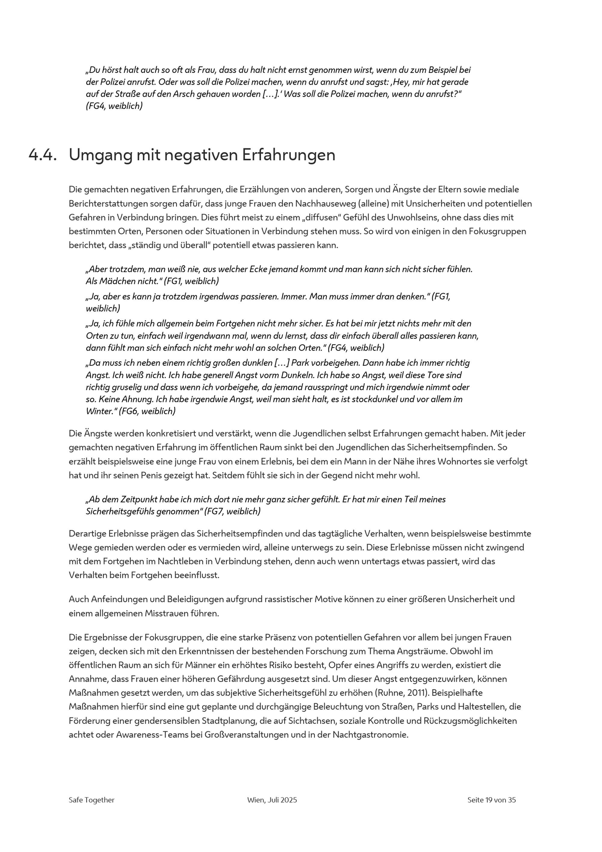 Safe Together - Sicheres Fortgehen in Wien für junge Frauen / L&R Sozialforschung: Claudia Sorger, Ronja Nikolatti & Nadja Bergmann ; Stadt Wien - Frauenservice Wien