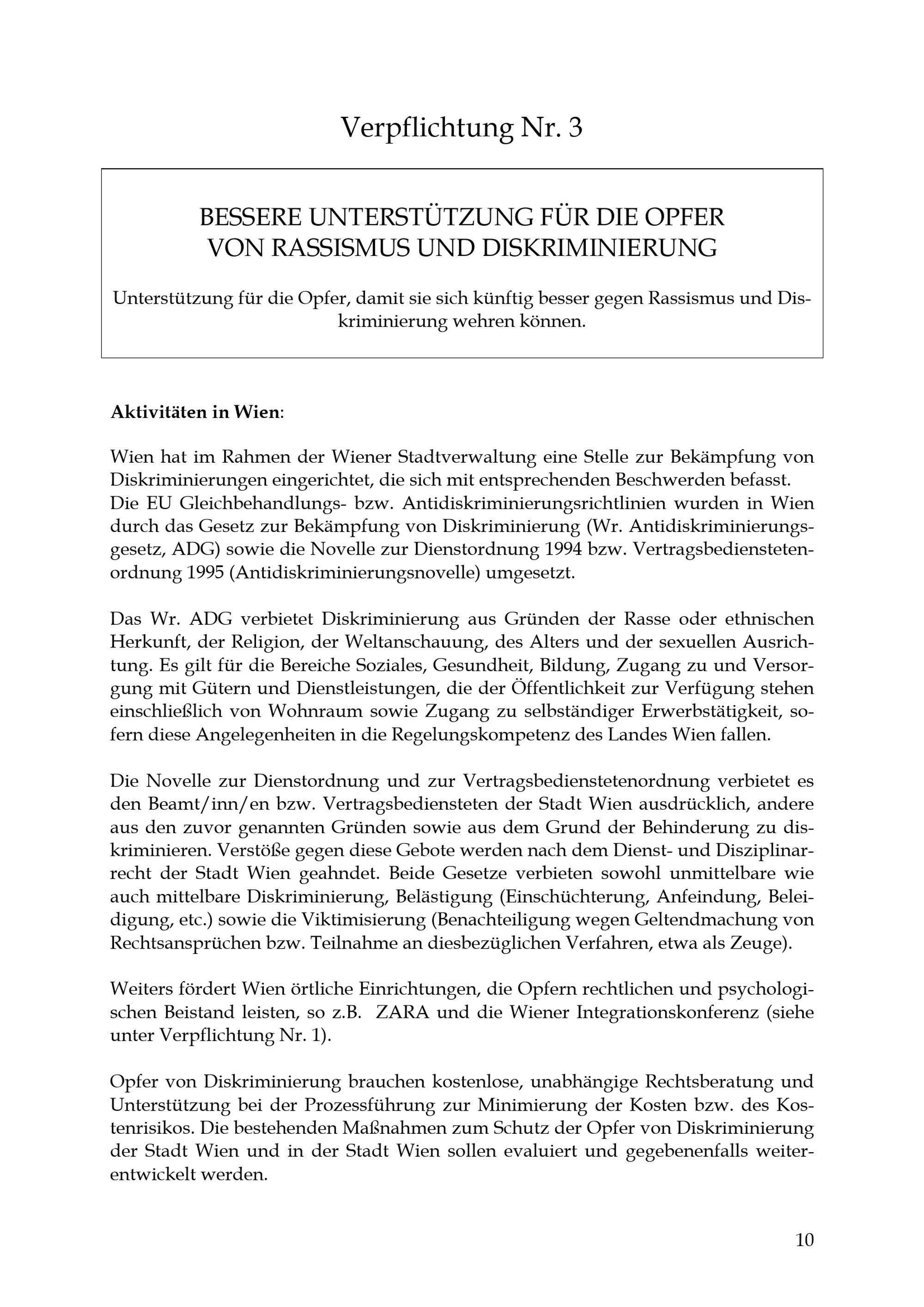 Umsetzung des 10-Punkte-Aktionsplans durch die Stadt Wien : Grundsatzerklärung, Maßnahmen und Vorhaben zur Bekämpfung von Rassismus, Fremdenfeindlichkeit und Diskriminierung / Stadt Wien ; Europäische Städte-Koalition gegen Rassismus