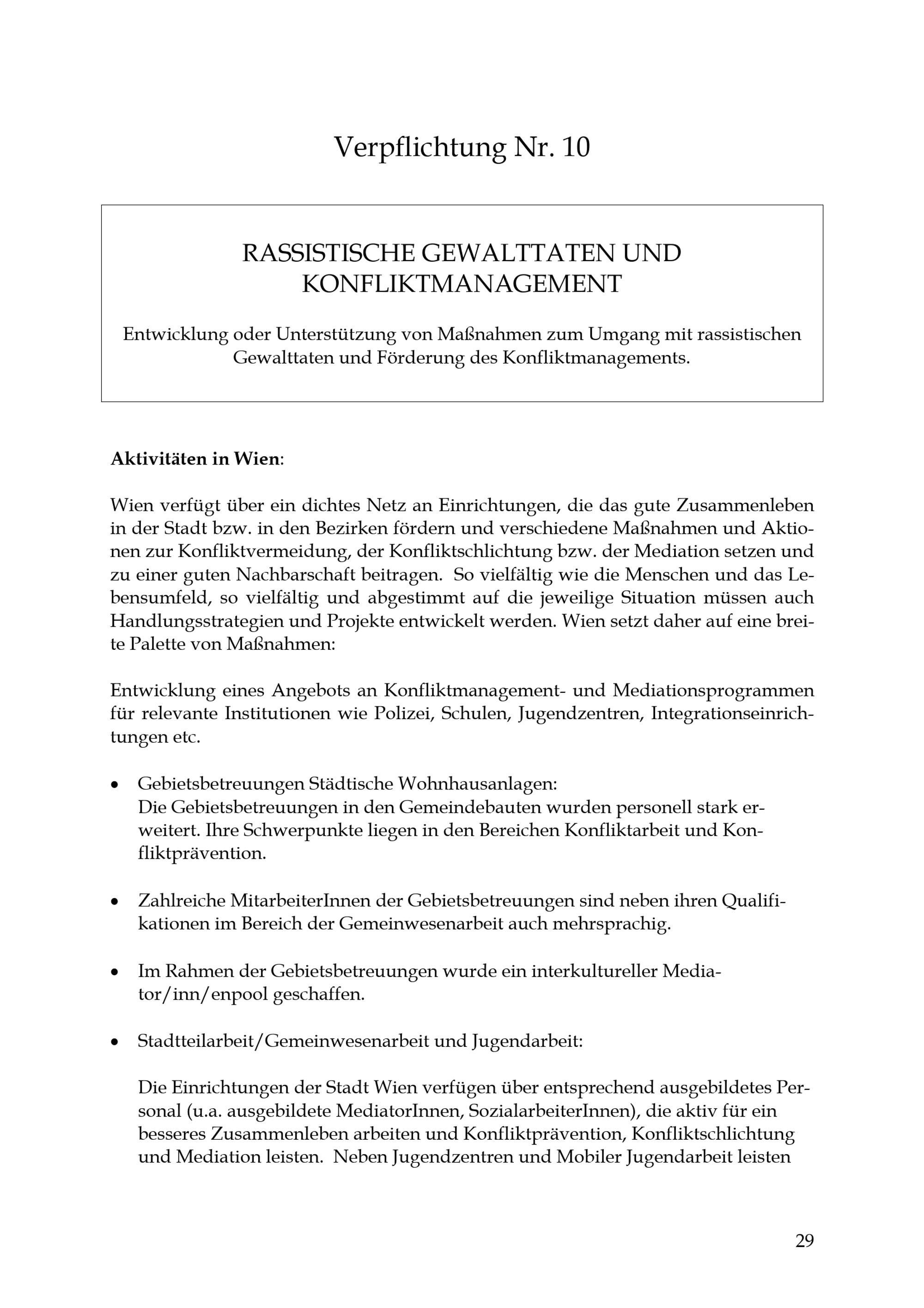 Umsetzung des 10-Punkte-Aktionsplans durch die Stadt Wien : Grundsatzerklärung, Maßnahmen und Vorhaben zur Bekämpfung von Rassismus, Fremdenfeindlichkeit und Diskriminierung / Stadt Wien ; Europäische Städte-Koalition gegen Rassismus