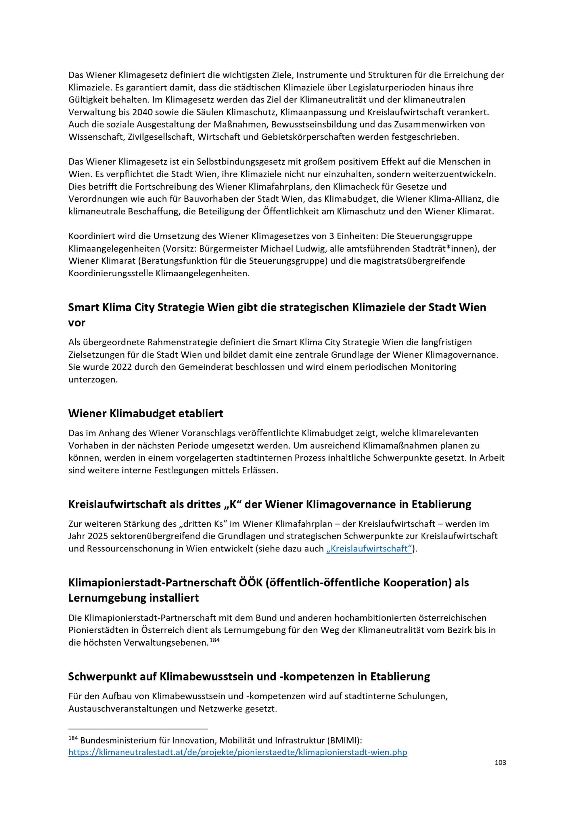 Wiener Klimafahrplan - das haben wir geschafft : Monitoring (Langfassung) / Stadt Wien ; Gesamtkoordination und Redaktion: Stadt Wien - Magistratsdirektion, Bereichsleitung für Klimaangelegenheiten, UIV Urban Innovation Vienna