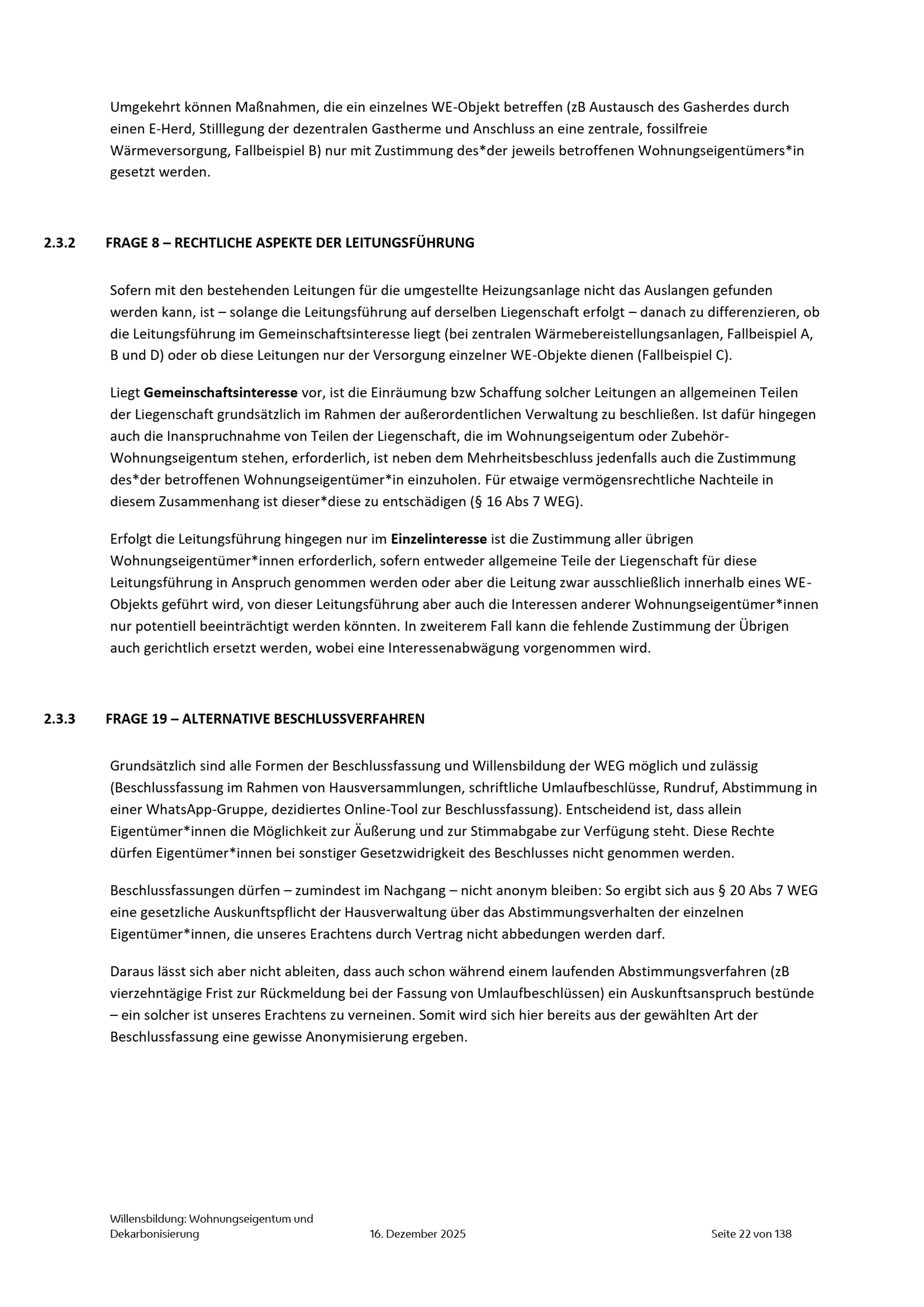 Willensbildung: Wohnungseigentum und Dekarbonisierung : Gutachten : Veröffentlichung im Sinne des § 4 IFG / Niederhuber & Partner Rechtsanwälte GmbH ; im Auftrag der Abteilung Energieplanung der Stadt Wien