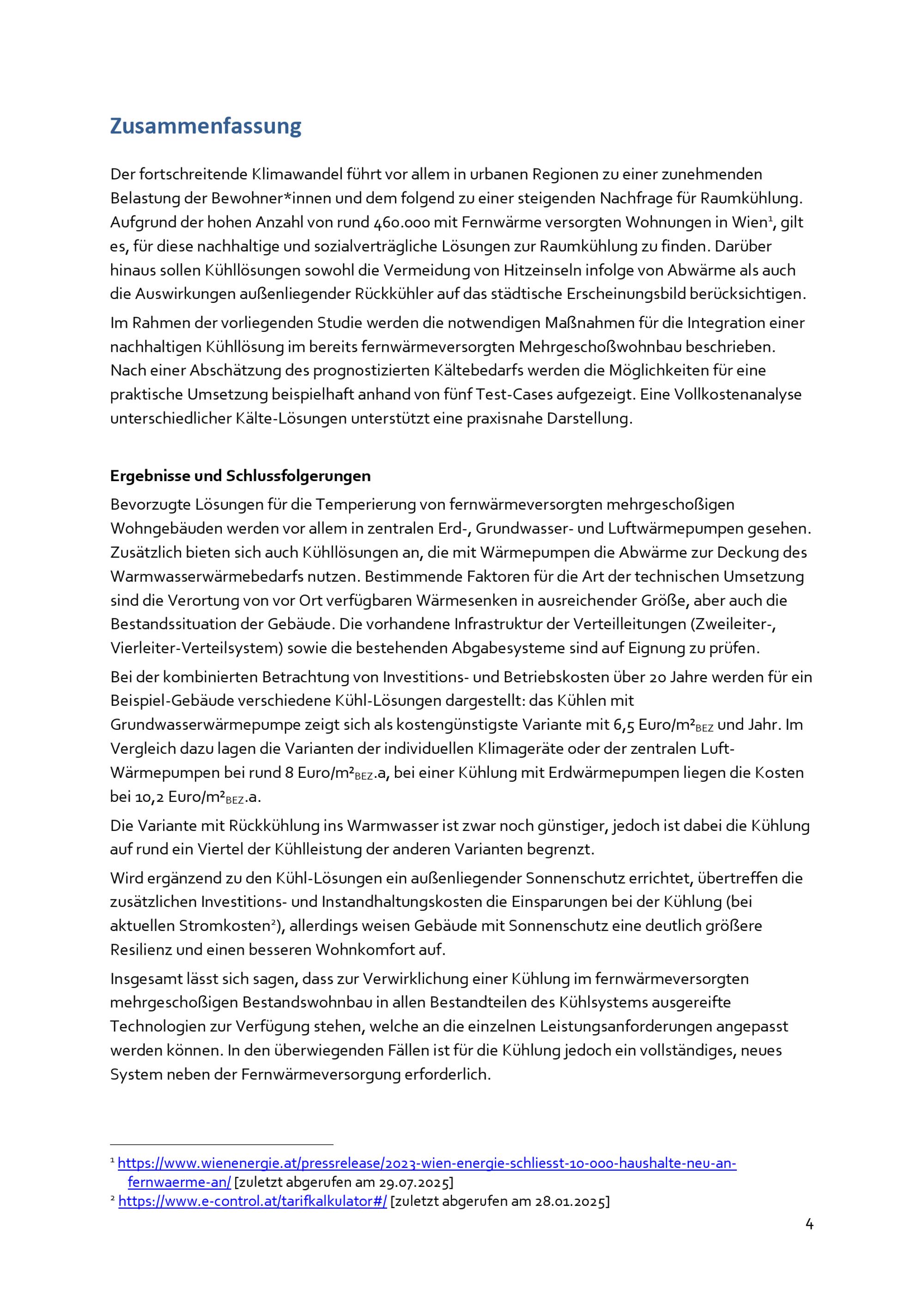 Aktive Kühlung im fernwärmeversorgten Wohnbau : Kurzbericht ; Veröffentlichung im Sinne des § 4 IFG / Institute of Building Research & Innovation (IBR&I), Österreichischen Gesellschaft für Umwelt und Technik (ÖGUT) ; im Auftrag der Abteilung Energieplanung der Stadt Wien