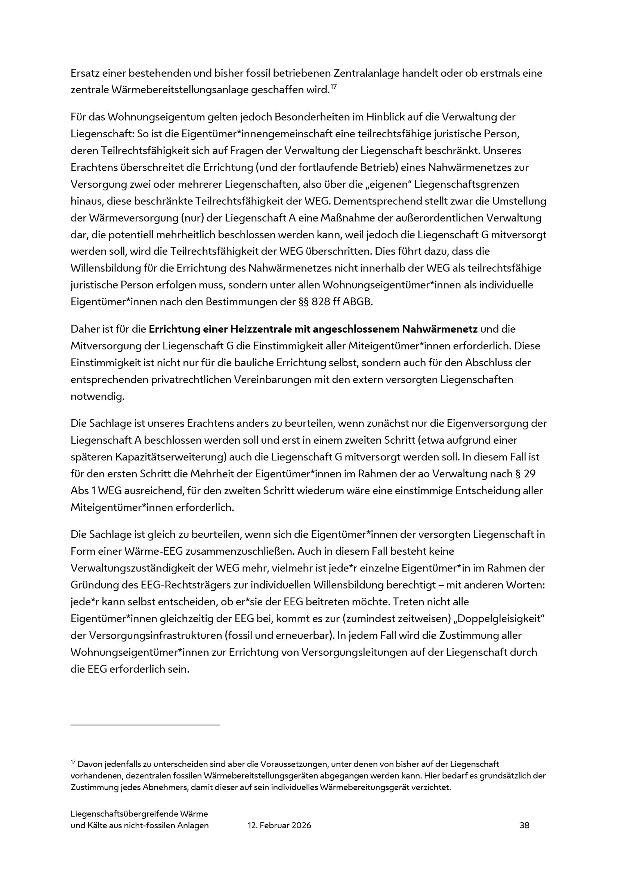 Liegenschaftsübergreifende Wärme und Kälte aus nicht-fossilen Anlagen : Gutachten : Veröffentlichung im Sinne des § 4 IFG / Niederhuber & Partner Rechtsanwälte GmbH ; im Auftrag der Abteilung Energieplanung der Stadt Wien