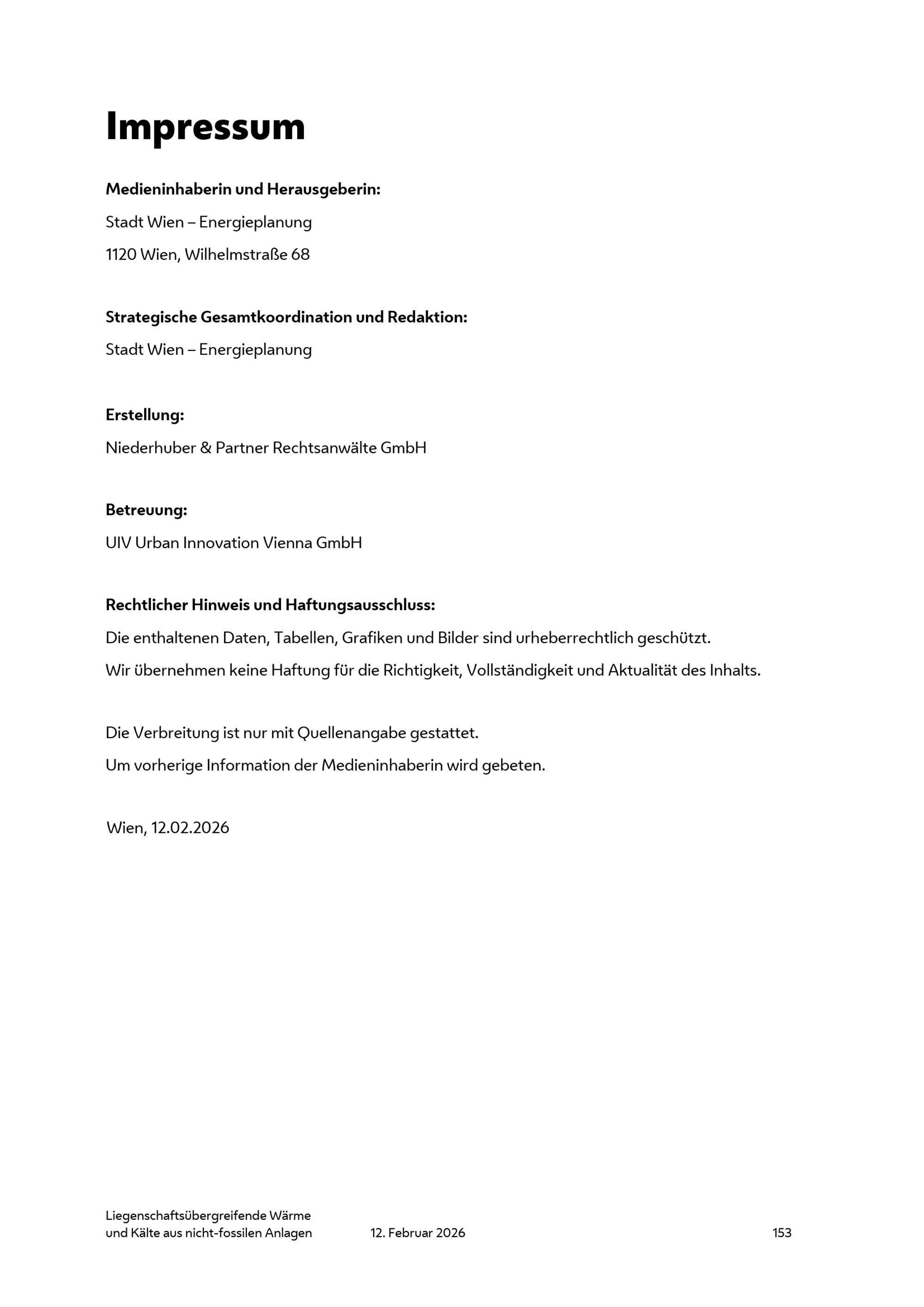 Liegenschaftsübergreifende Wärme und Kälte aus nicht-fossilen Anlagen : Gutachten : Veröffentlichung im Sinne des § 4 IFG / Niederhuber & Partner Rechtsanwälte GmbH ; im Auftrag der Abteilung Energieplanung der Stadt Wien