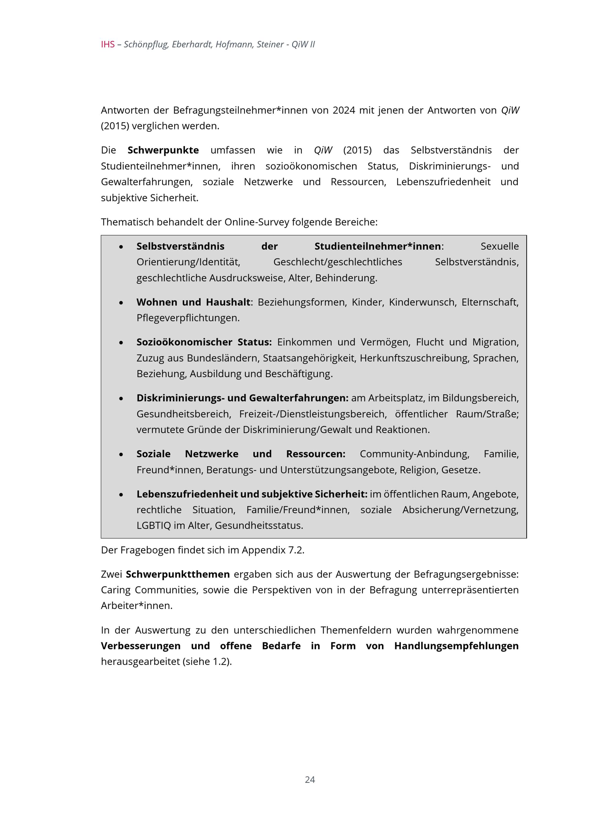 Queer in Wien II : zweite Stadt Wien Studie zur Lebenssituation von LGBTIQ Personen : Projektbericht / Karin Schönpflug, Viktoria Eberhardt, Roswitha Hofmann, Mario Steiner ; Studie im Auftrag der Wiener Antidiskriminierungsstelle für LGBTIQ Angelegenheiten; Institut für höhere Studien Wien