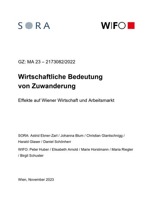 Wirtschaftliche Bedeutung von Zuwanderung : Effekte auf Wiener Wirtschaft und Arbeitsmarkt / SORA, WIFO ; Astrid Ebner-Zarl, [...]