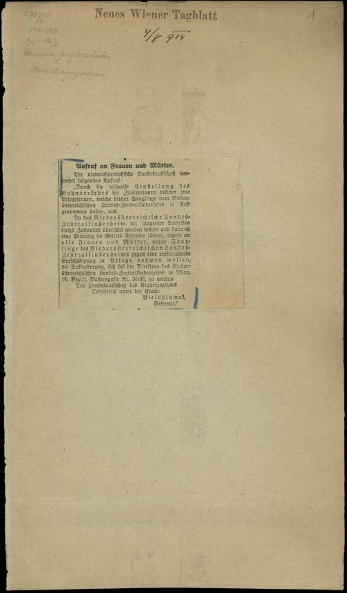 Weltkrieg : Zeitungsausschnittsammlung vom Weltkrieg 1914 - 1918 : Sanitäre Angelegenheiten ; H, Bevölkerungswesen ; Bd. [...]