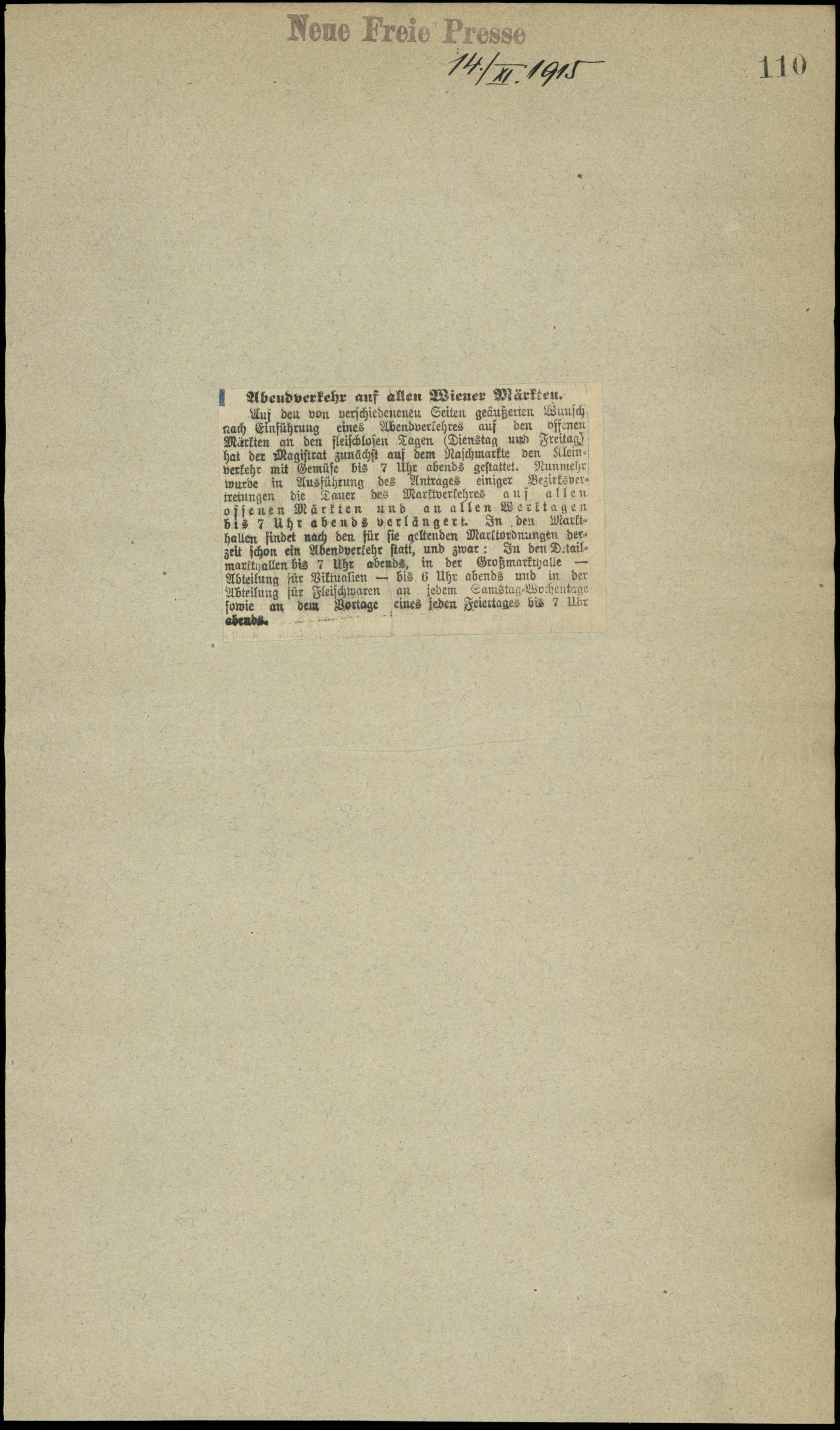 Abendverkehr auf allen Wiener Märkten.
