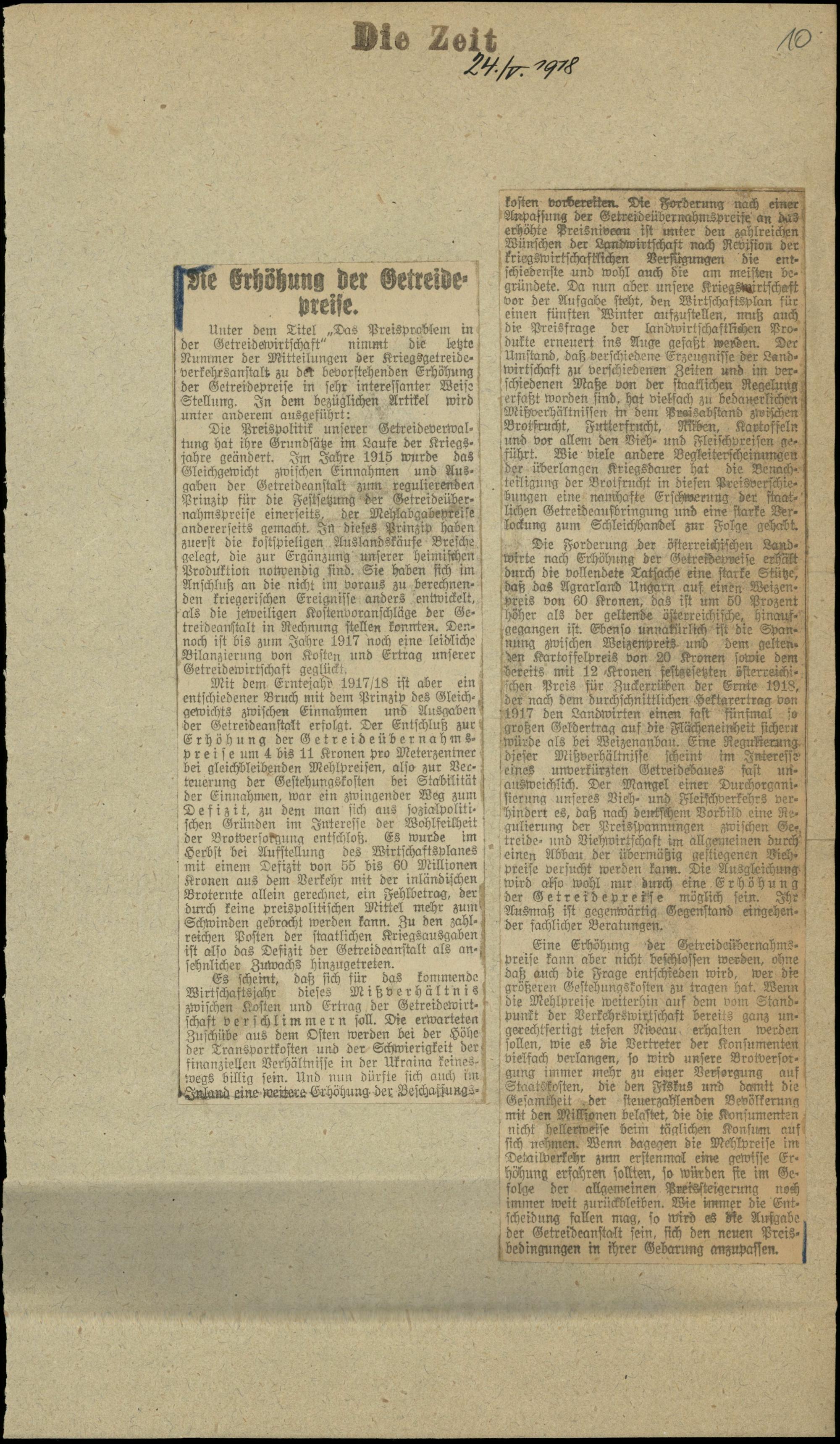 Die Erhöhung der Getreidepreise.
