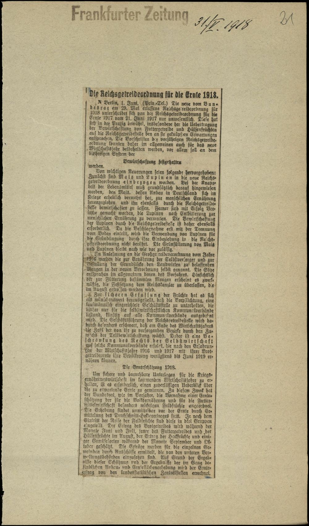 Die Reichsgetreideordnung für die Ernte 1918.