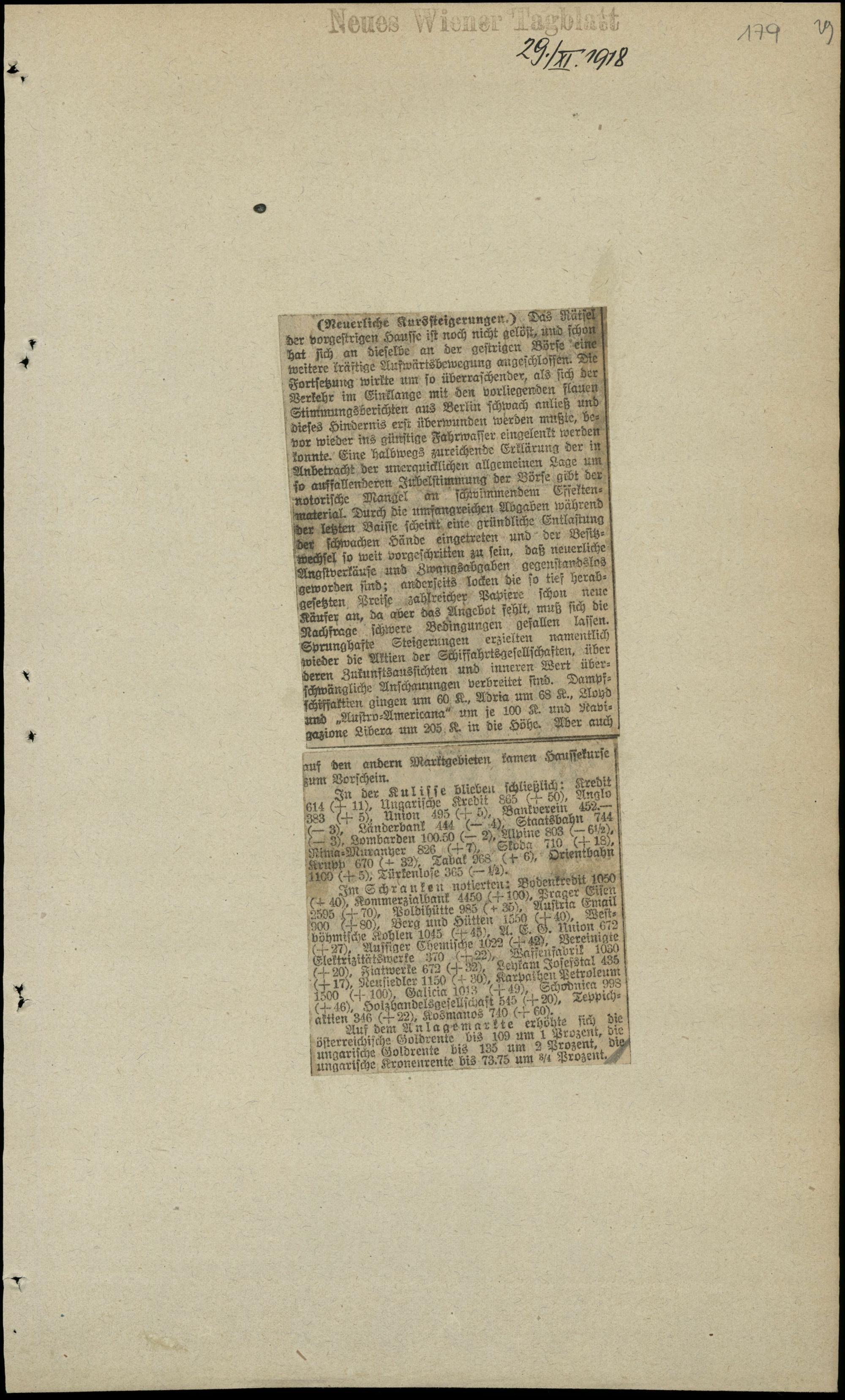 Neuerliche Kurssteigerungen.