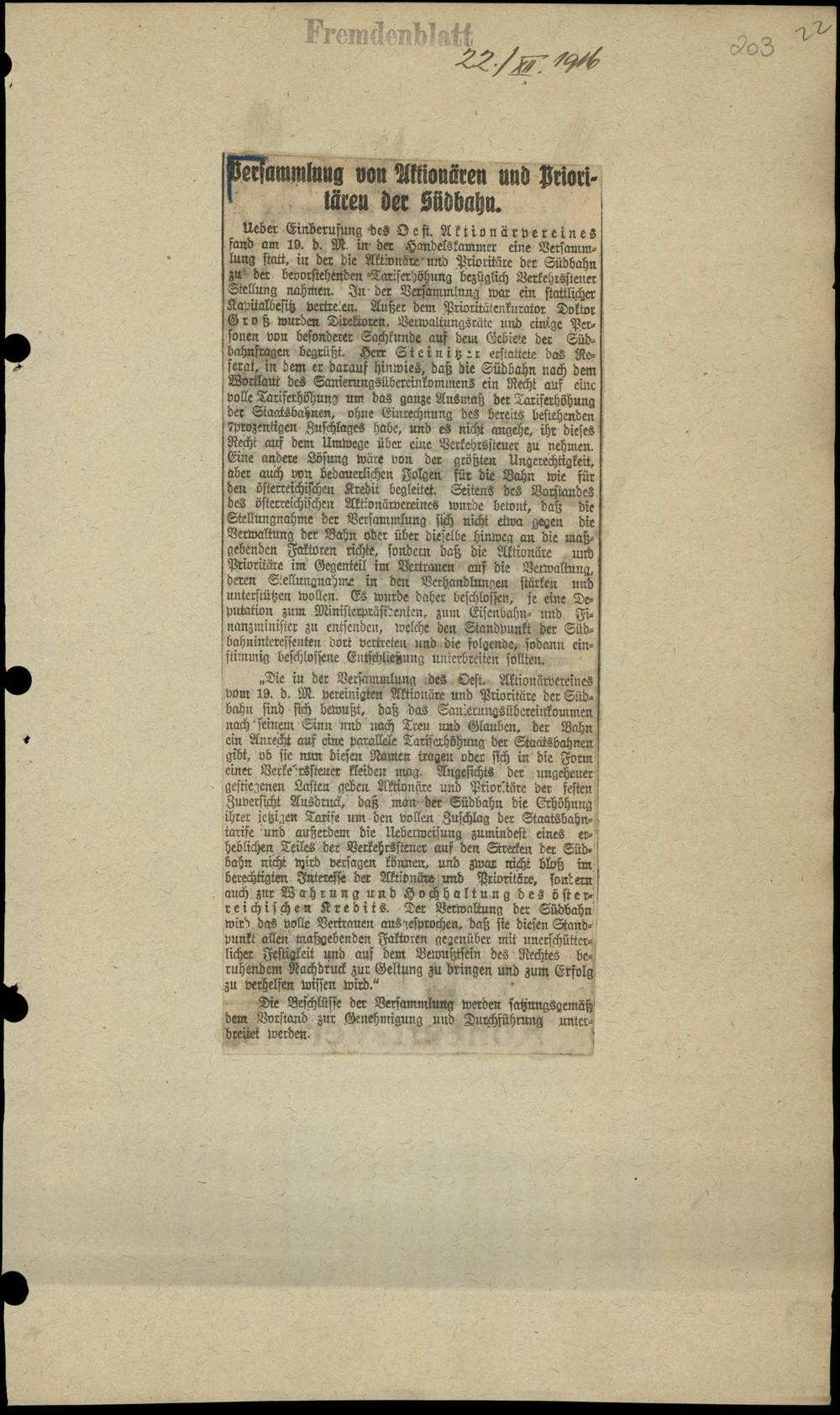 Versammlung von Aktionären und Prioritären der Südbahn.
