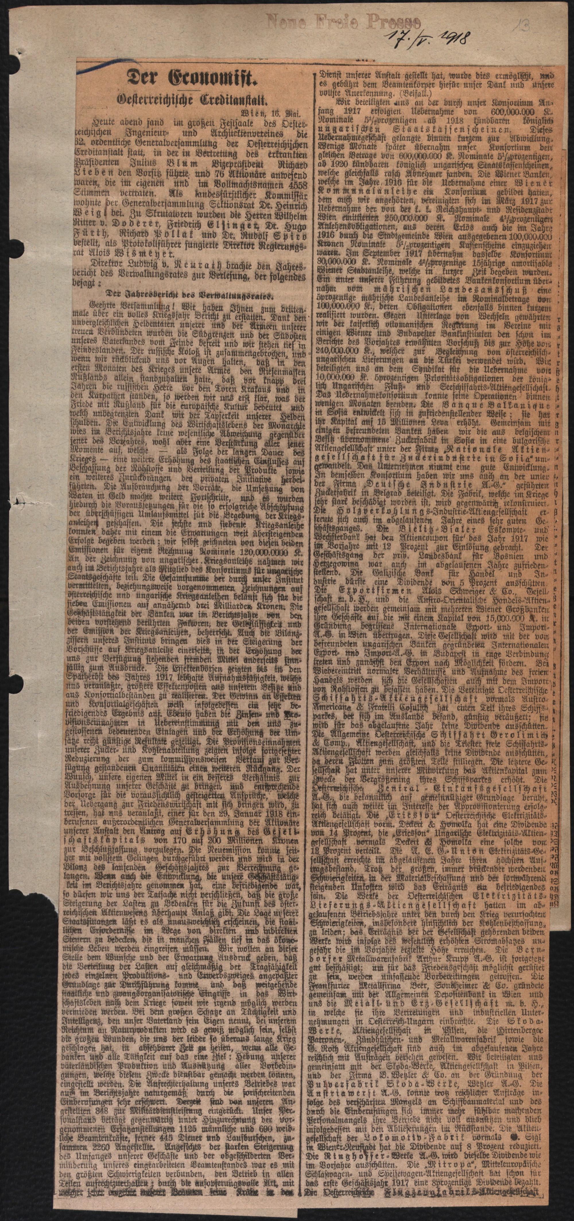 Der Economist. Oesterreichische Creditanstalt.