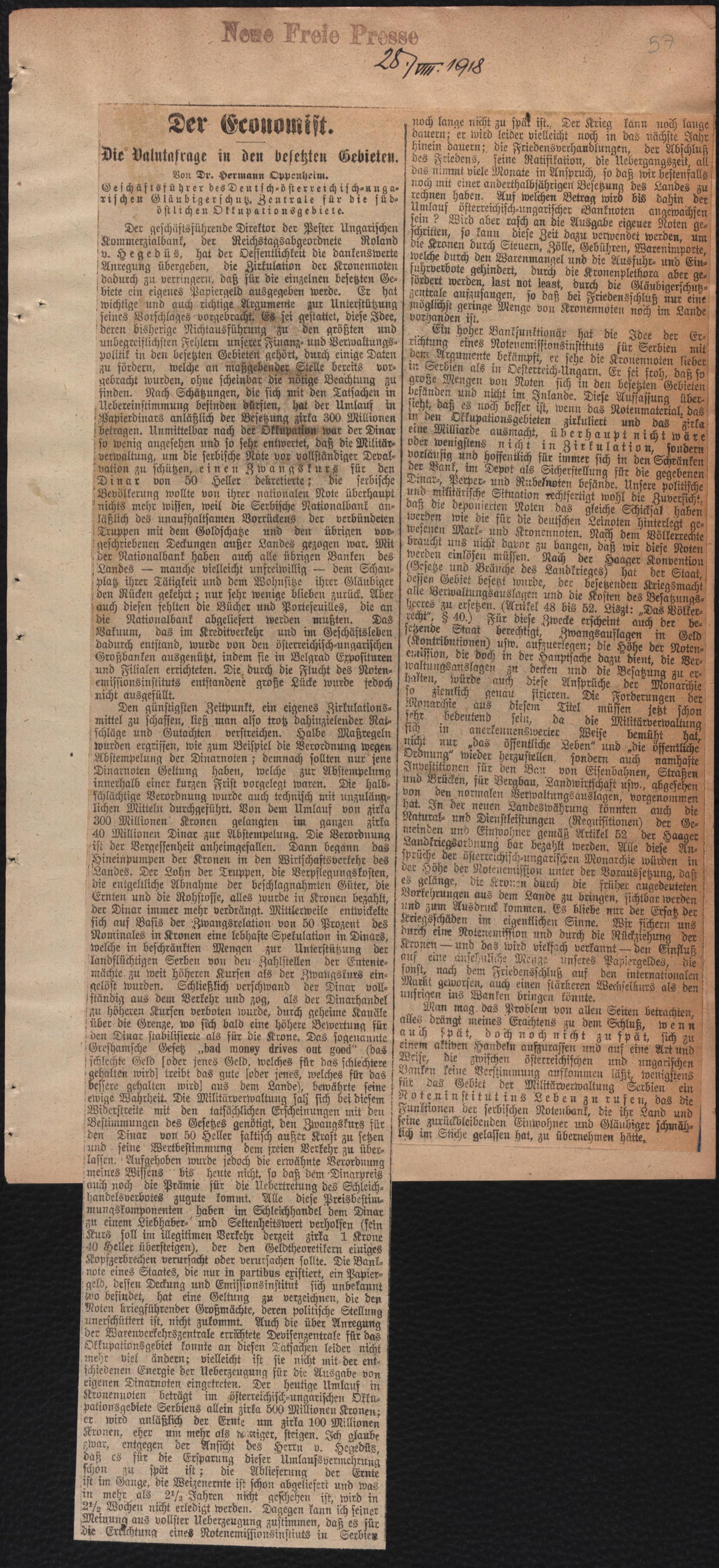 Der Economist. Die Valutafrage in den besetzen Gebieten.