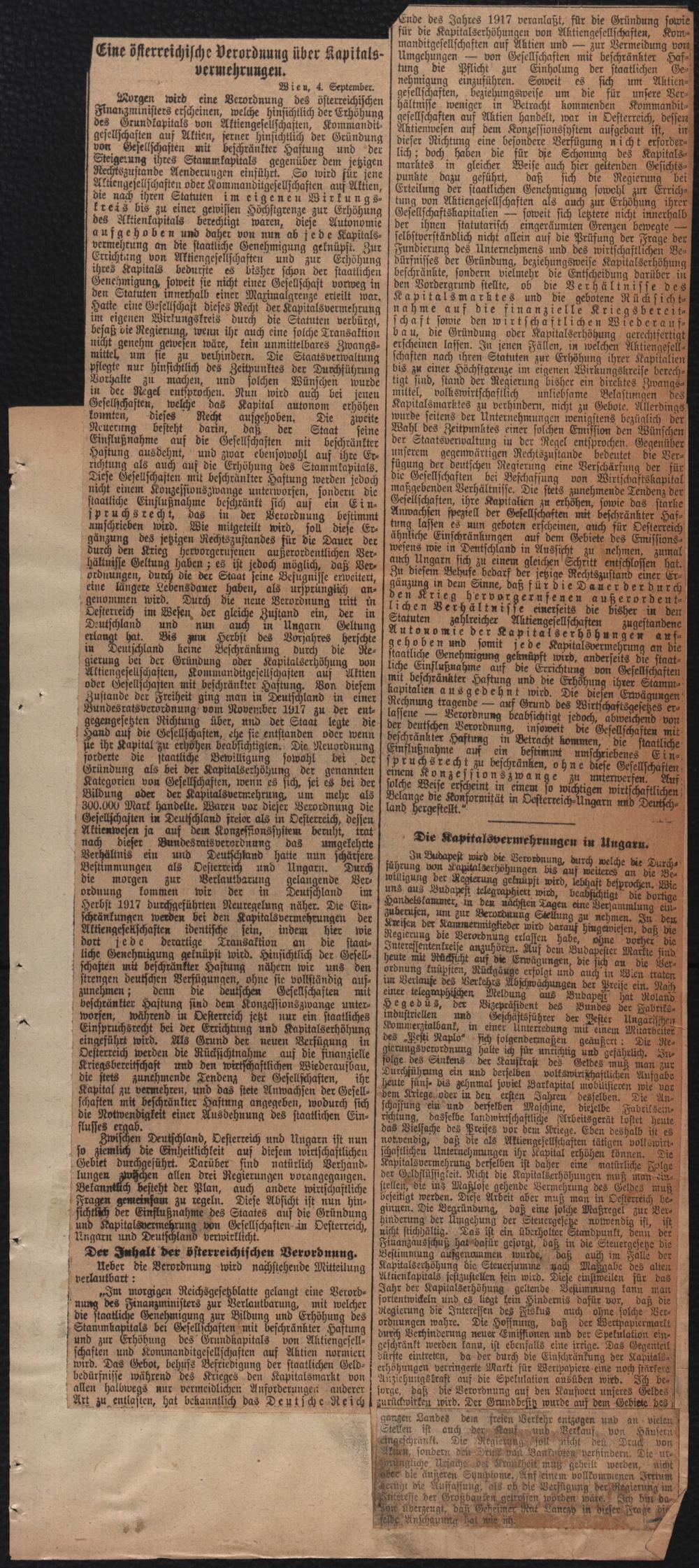Eine österreichische Verordnung über Kapitalsvermehrungen.