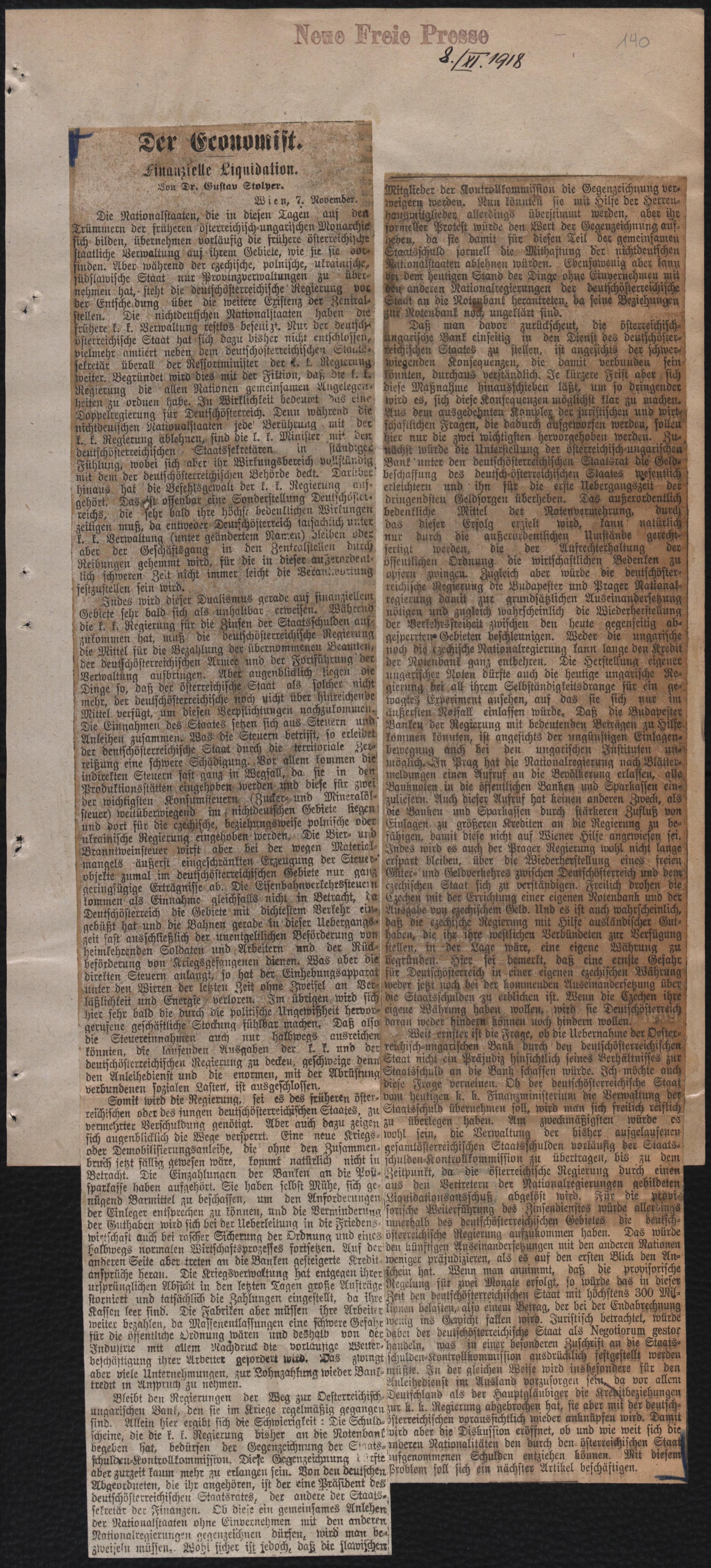 Der Economist. Finanzielle Liquidation.