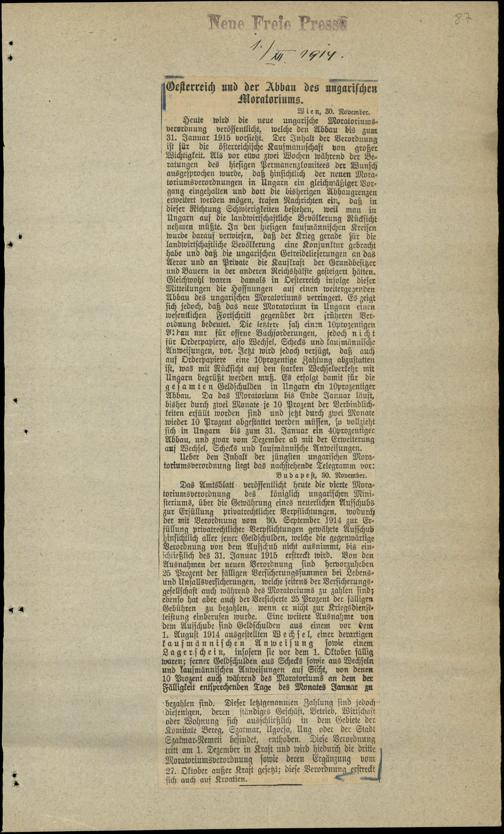 Oesterreich und der Abbau des ungarischen Moratoriums.