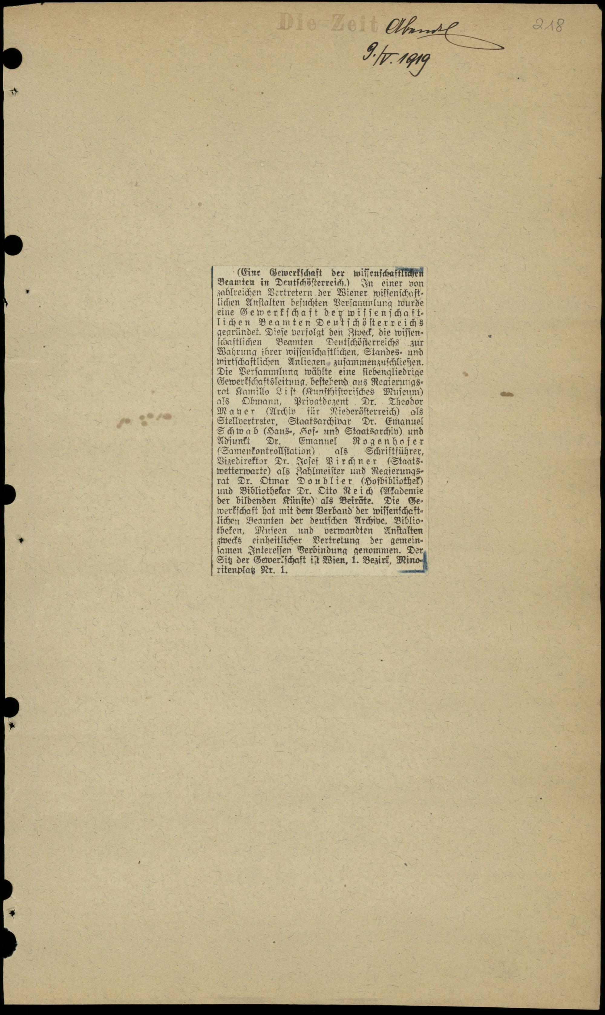 Eine Gewerkschaft der wissenschaftlichen Beamten in Deutschösterreich.