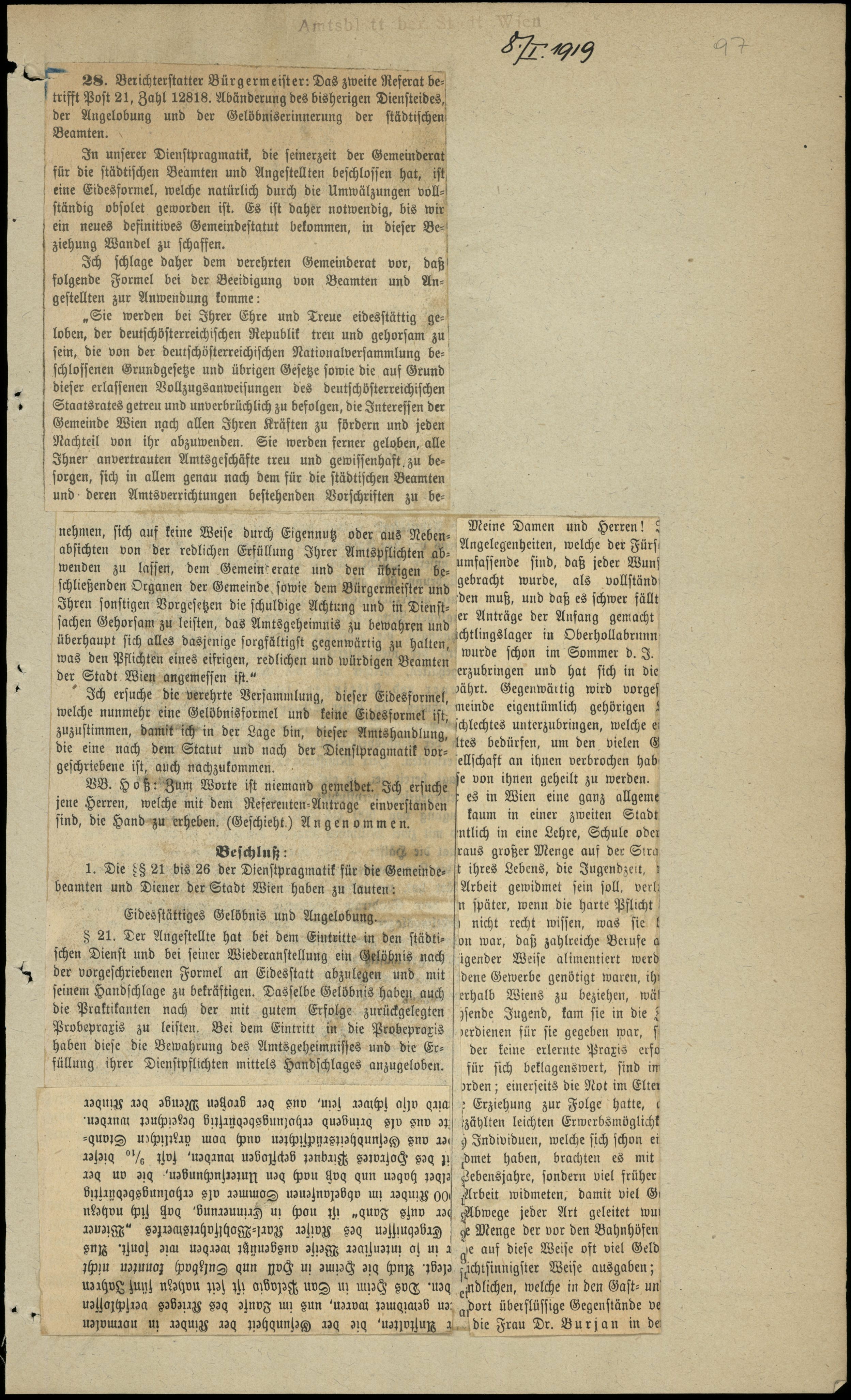 28. Berichterstatter Bürgermeister: