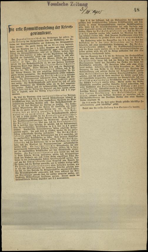 Die erste Kommissionslesung der Kriegsgewinnsteuer.