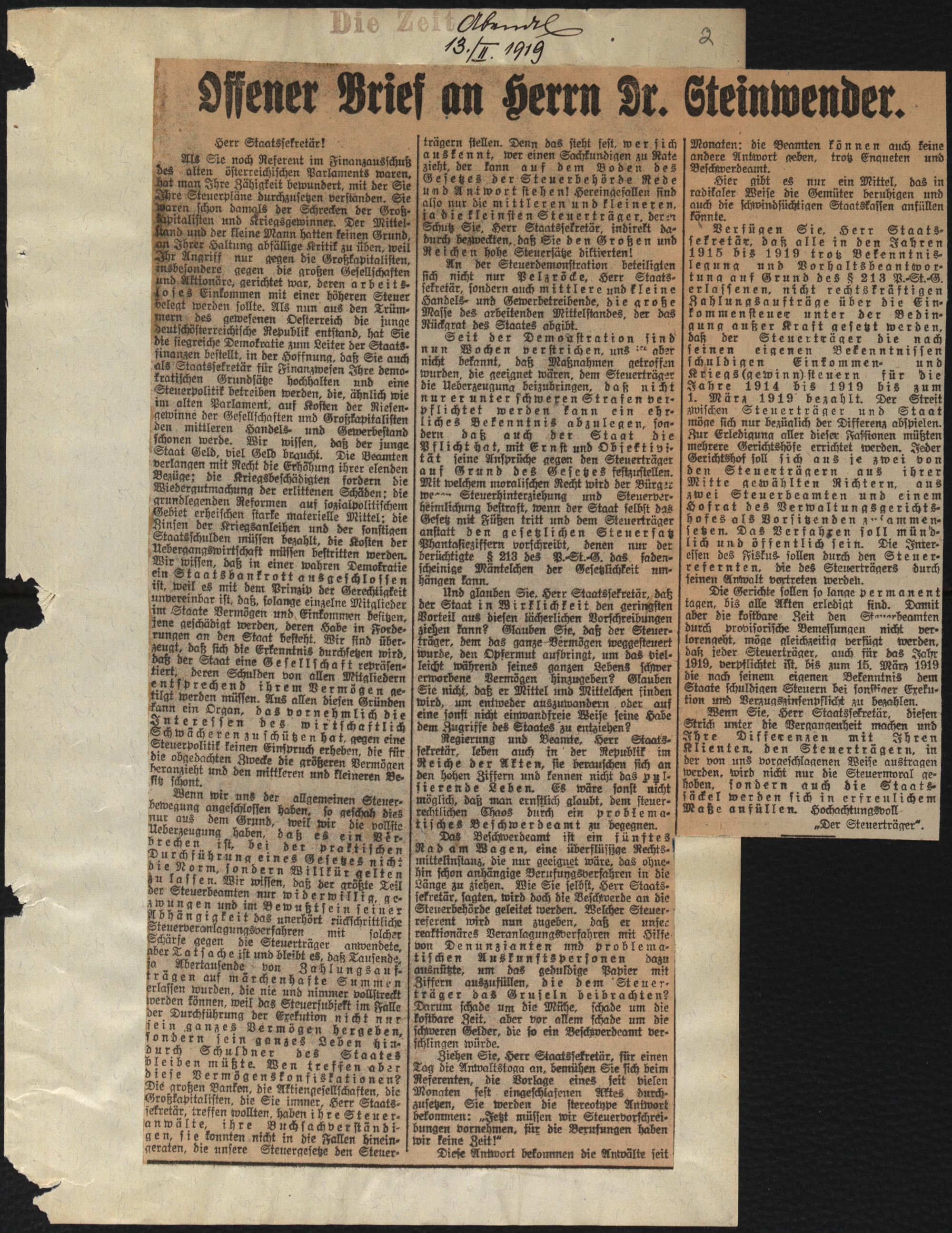Offener Brief an Herrn Dr. Steinwender.