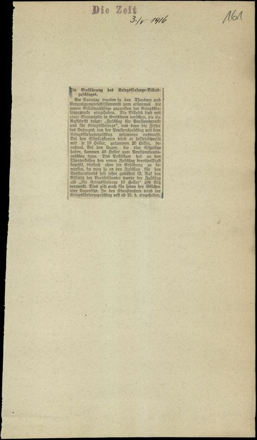 Die Einführung des Kriegsfürsorge-Billettzuschlages.