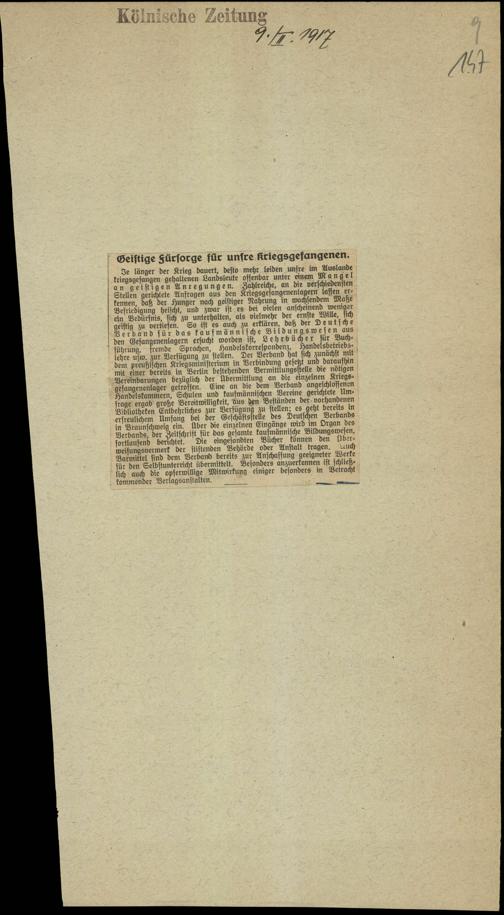 Geistige Fürsorge für unsre Kriegsgefangenen.