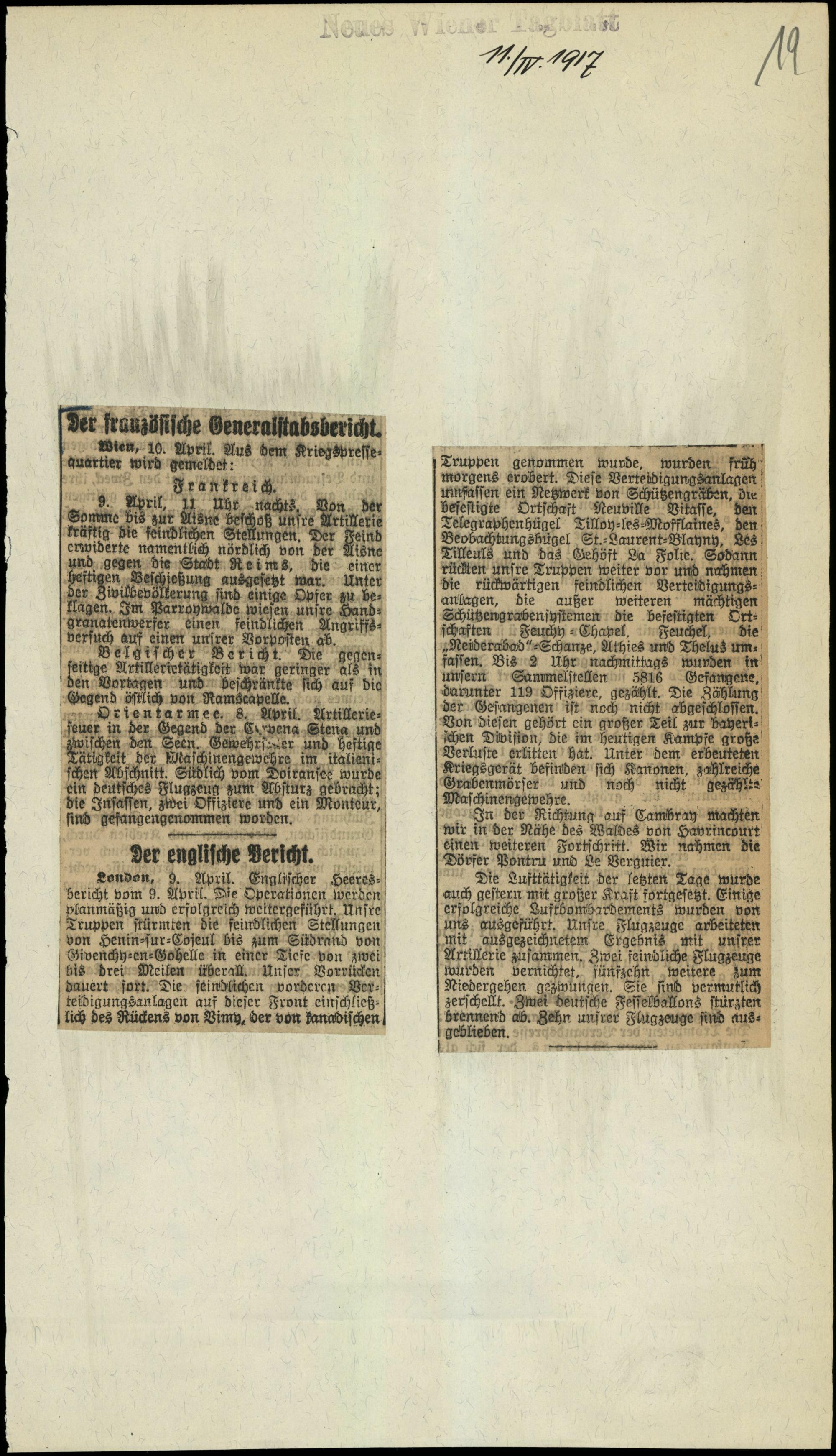 Der französische Generalstabsbericht.
