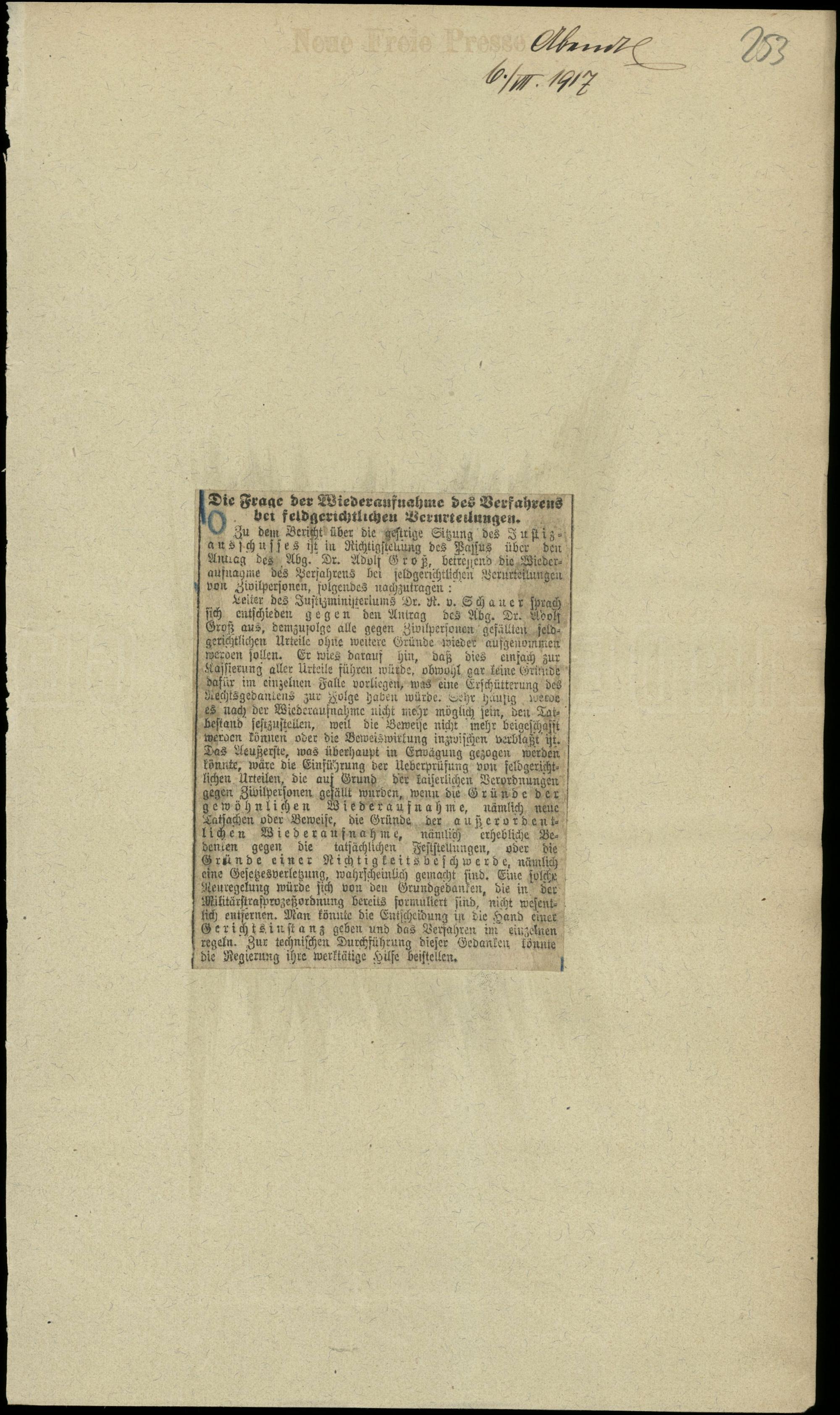 Die Frage der Wiederaufnahme des Verfahrens bei feldgerichtlichen Verurteilungen.