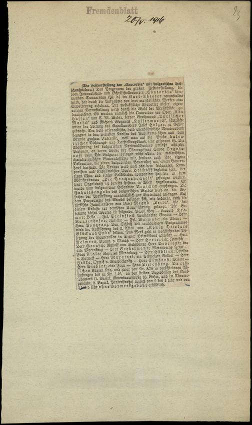 Die Festvorstellung der ,,Concordia'' mit bulgarischen Hofschauspielern.