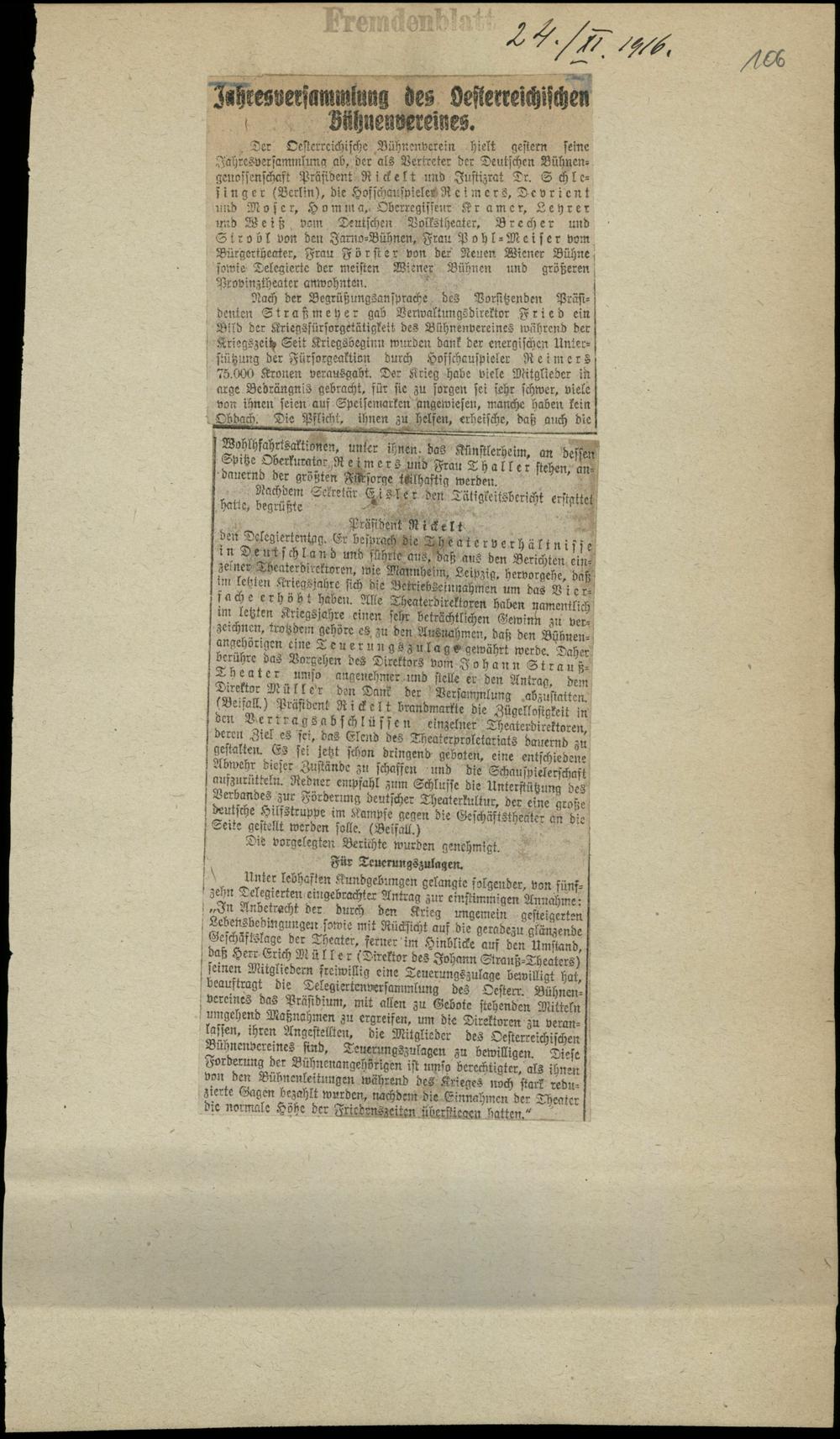 Jahresversammlung des Oesterreichischen Bühnenvereines.