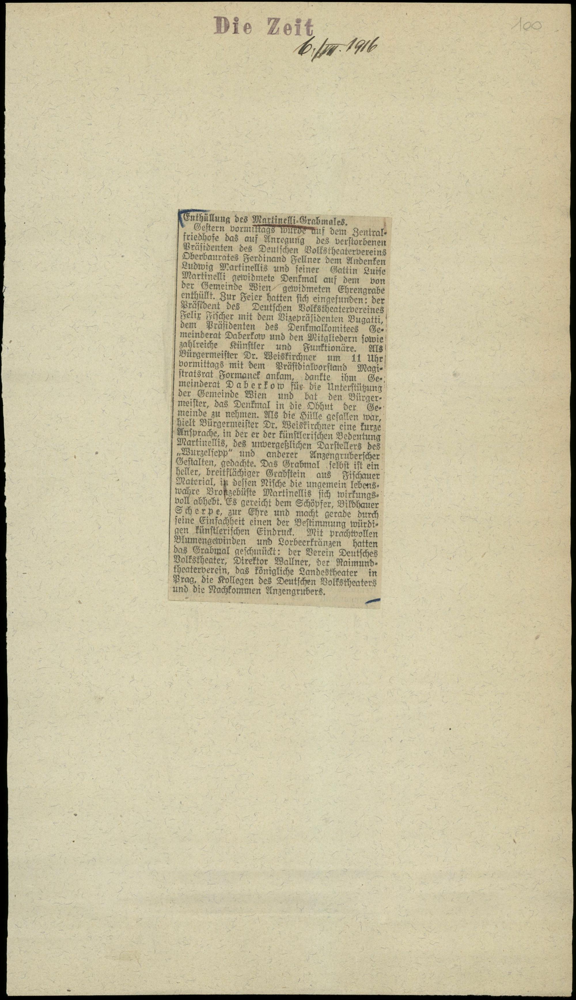 Enthüllung des Martinelli-Grabmales.