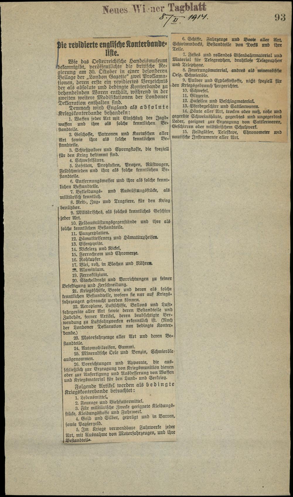 Die revidierte englische Konterbandeliste.