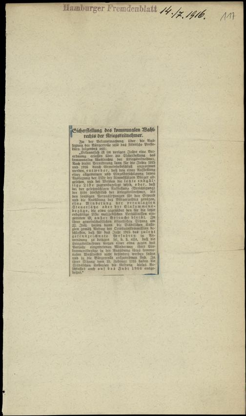 Sicherstellung des kommunalen Wahlrechts der Kriegsteilnehmer.