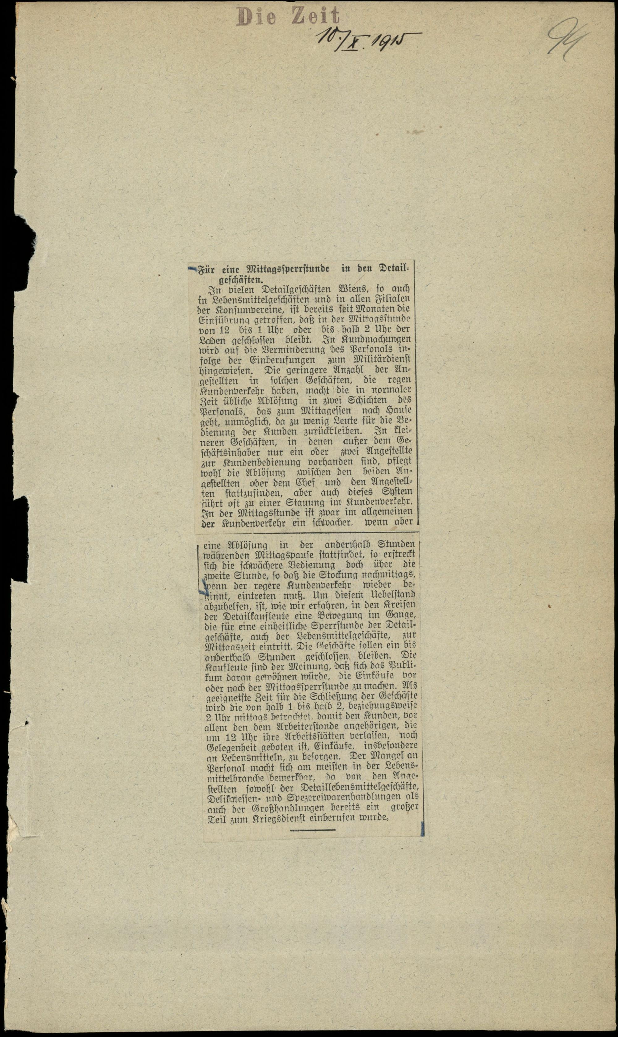 Für eine Mittagssperrstunde in den Detailgeschäften.