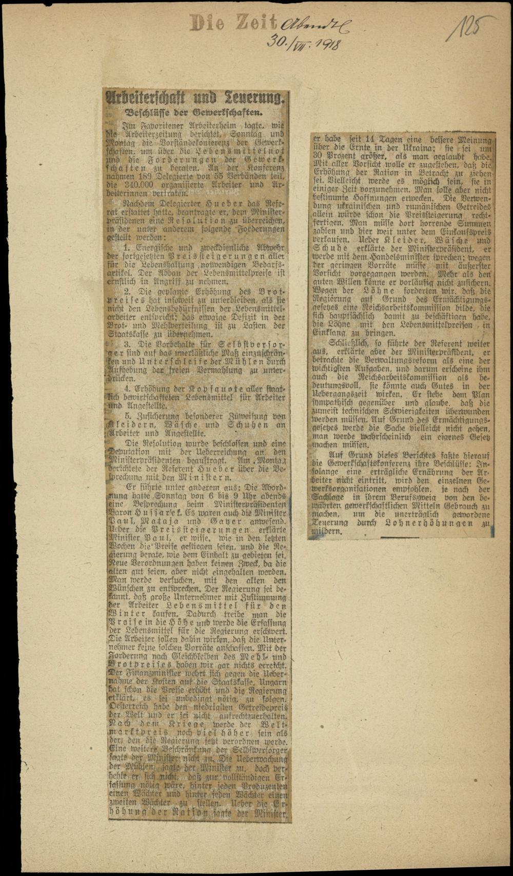 Arbeiterschaft und Teuerung.