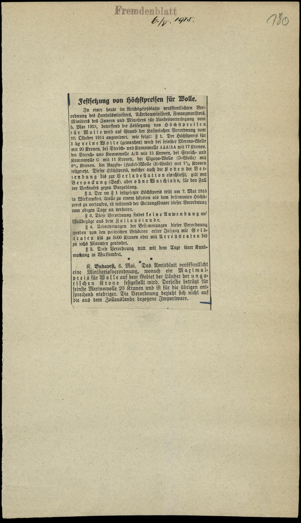 Festsetzung von Höchstpreisen für Wolle.