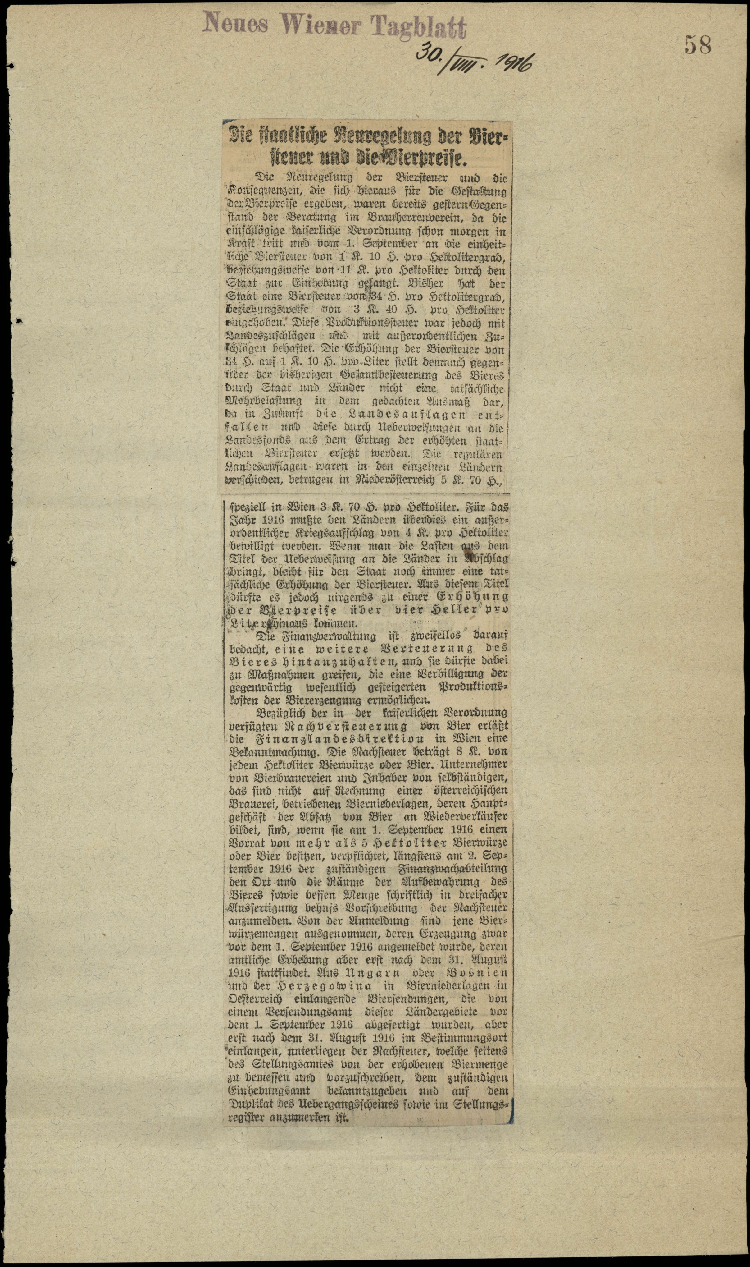 Die staatliche Neuregelung der Biersteuer und die Bierpreise.