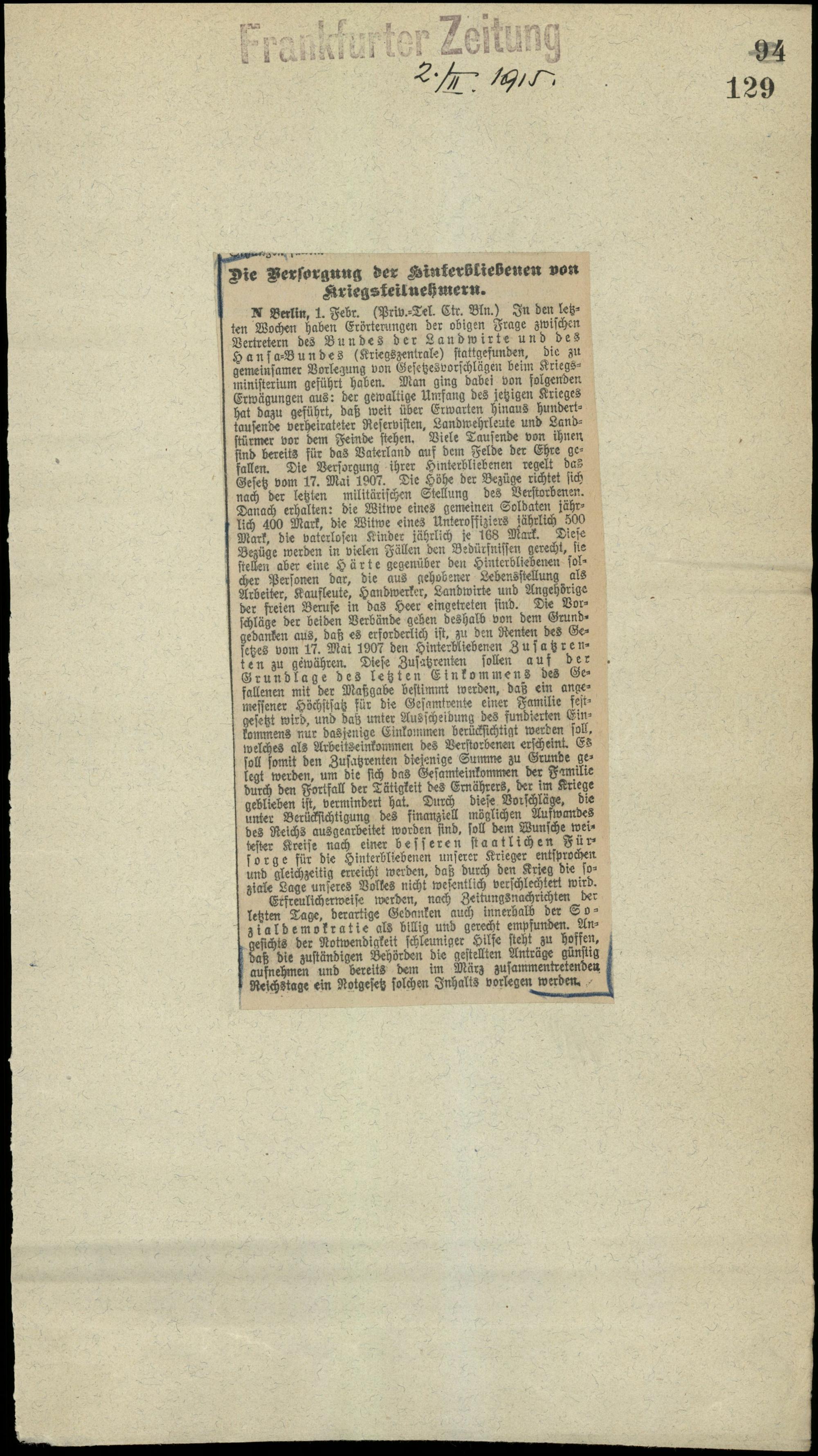 Die Versorgung der Hinterbliebenen von Kriegsteilnehmern.