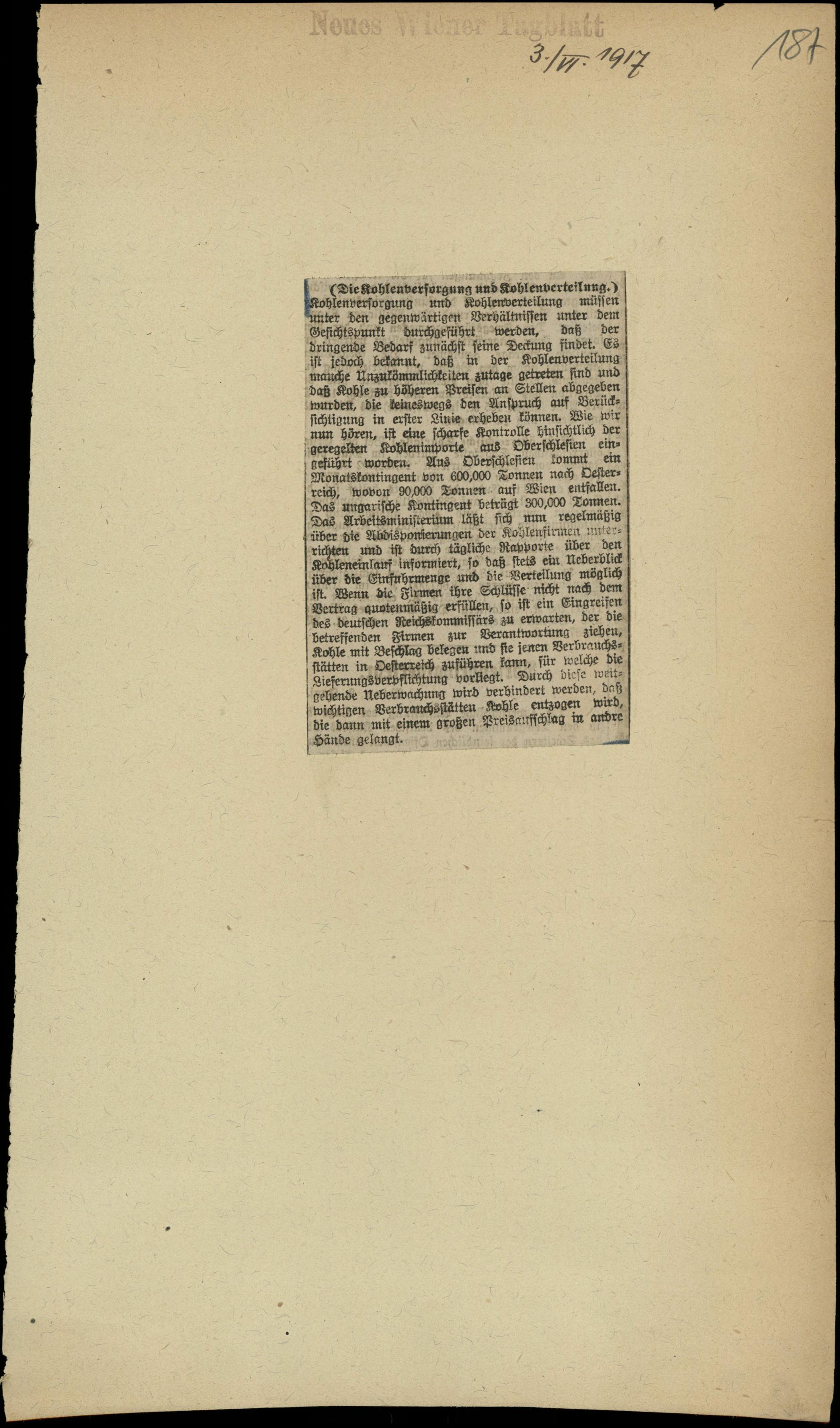 Die Kohlenversorgung und Kohlenverteilung.