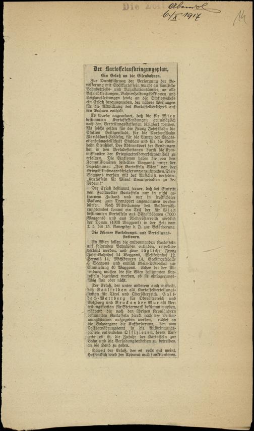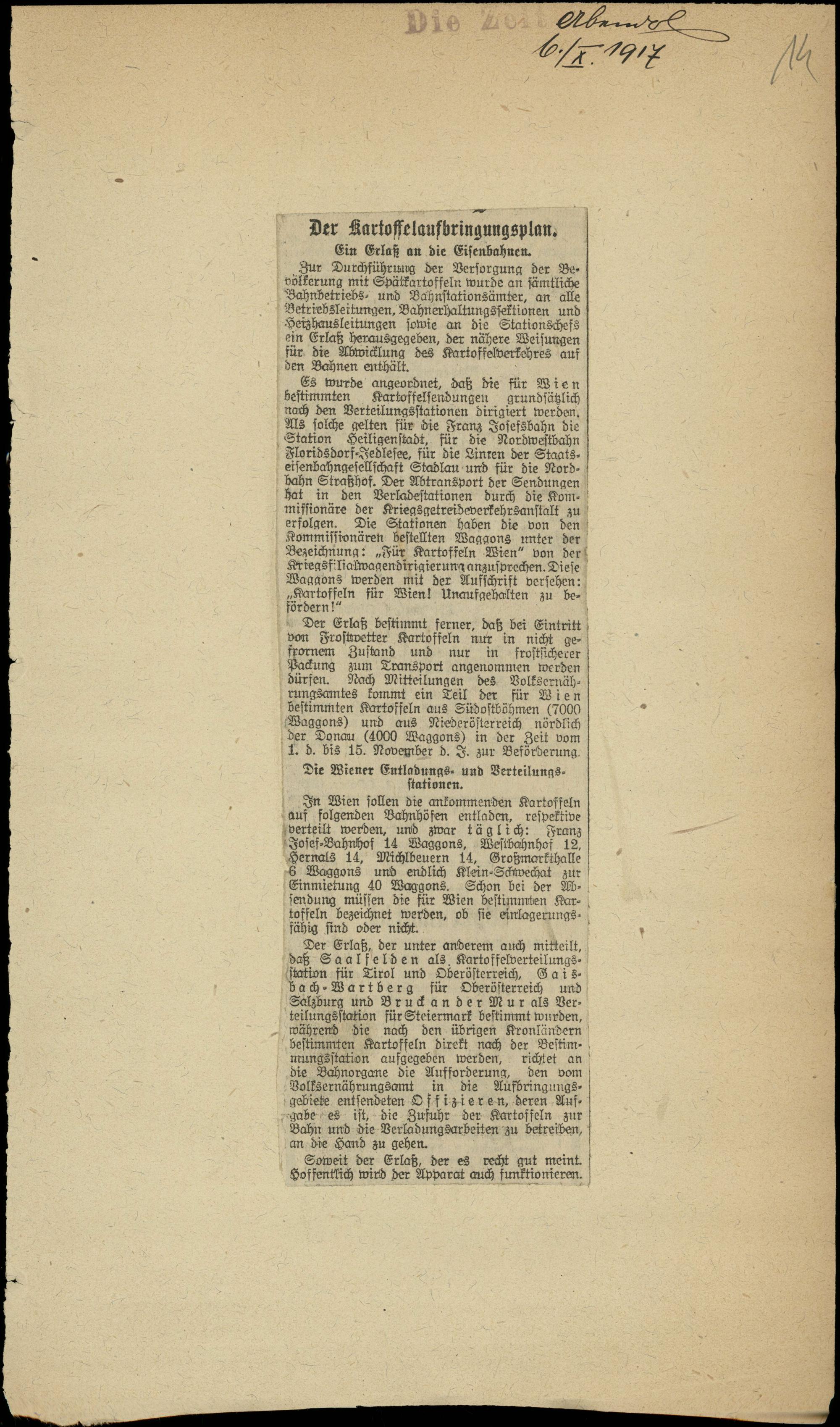Der Kartoffelaufbringungsplan.