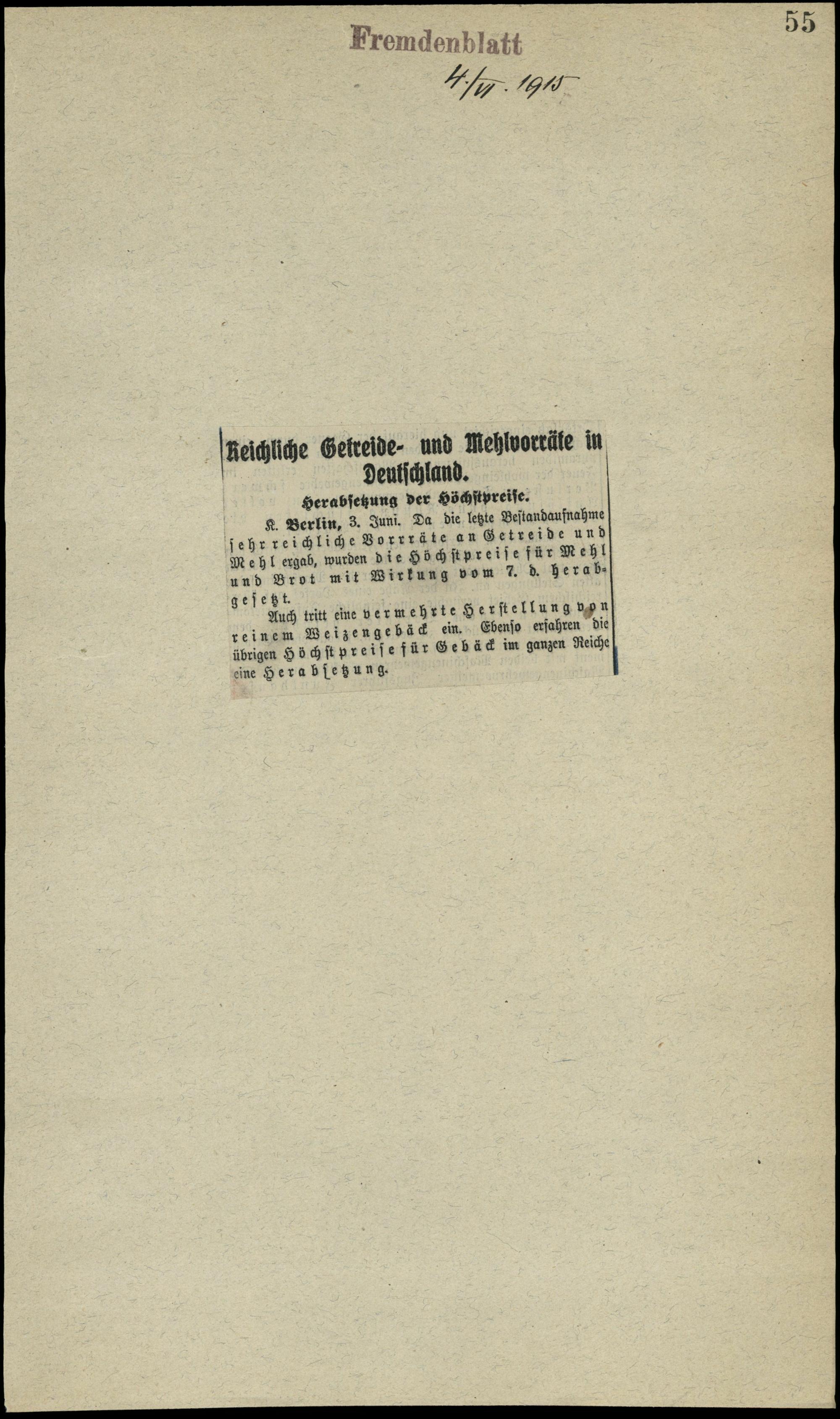 Reichliche Getreide- und Mehlvorräte in Deutschland.