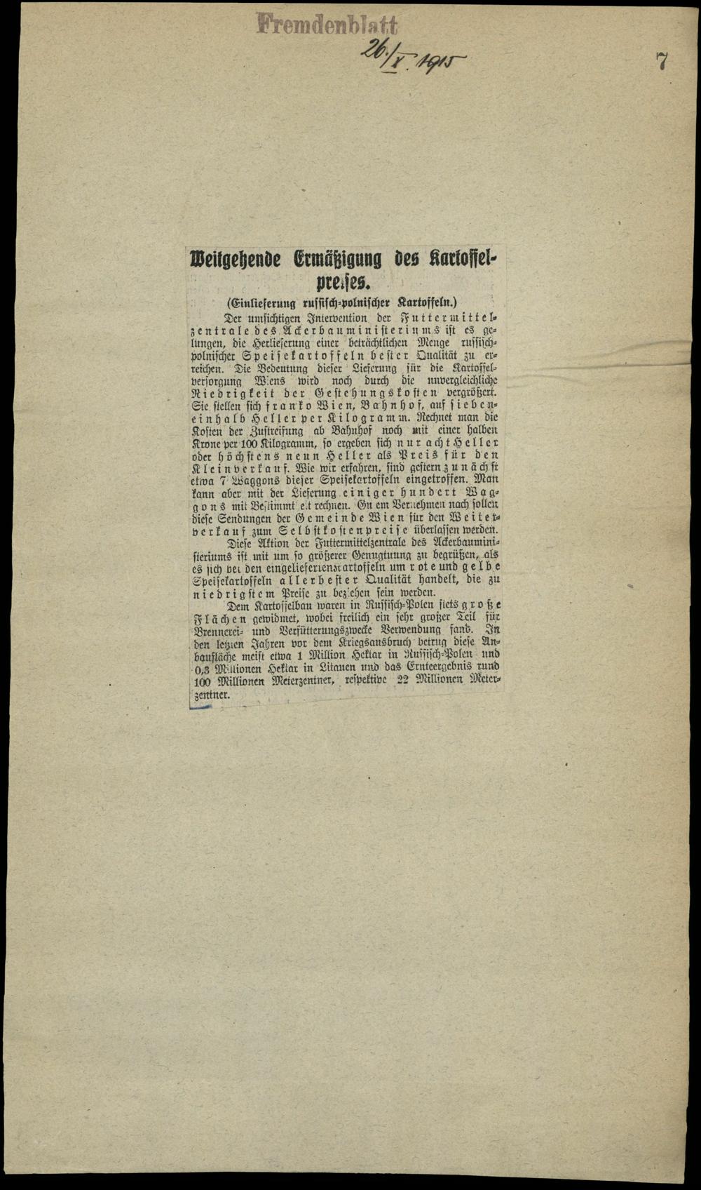 Weitgehende Ermäßigung des Kartoffelpreises.
